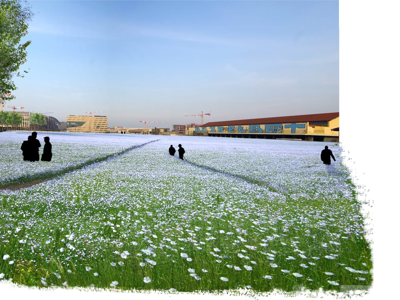 “Aire D’attente” (French for “waiting area”) was a joint effort between artist Thierry Boutonnier and architecture firm Fabriques Architectures Paysages to transform a neglected wasteland in La Confluence — France’s first fully sustainable neighborhood — into an urban agroecosystem. Grown near the contemporary arts center La Sucrière, the revitalized field also nourished flax and barley; the resulting harvest was repurposed into eco-friendly building materials, such as blocks of hempcrete, which were on display in an indoor space nearby.