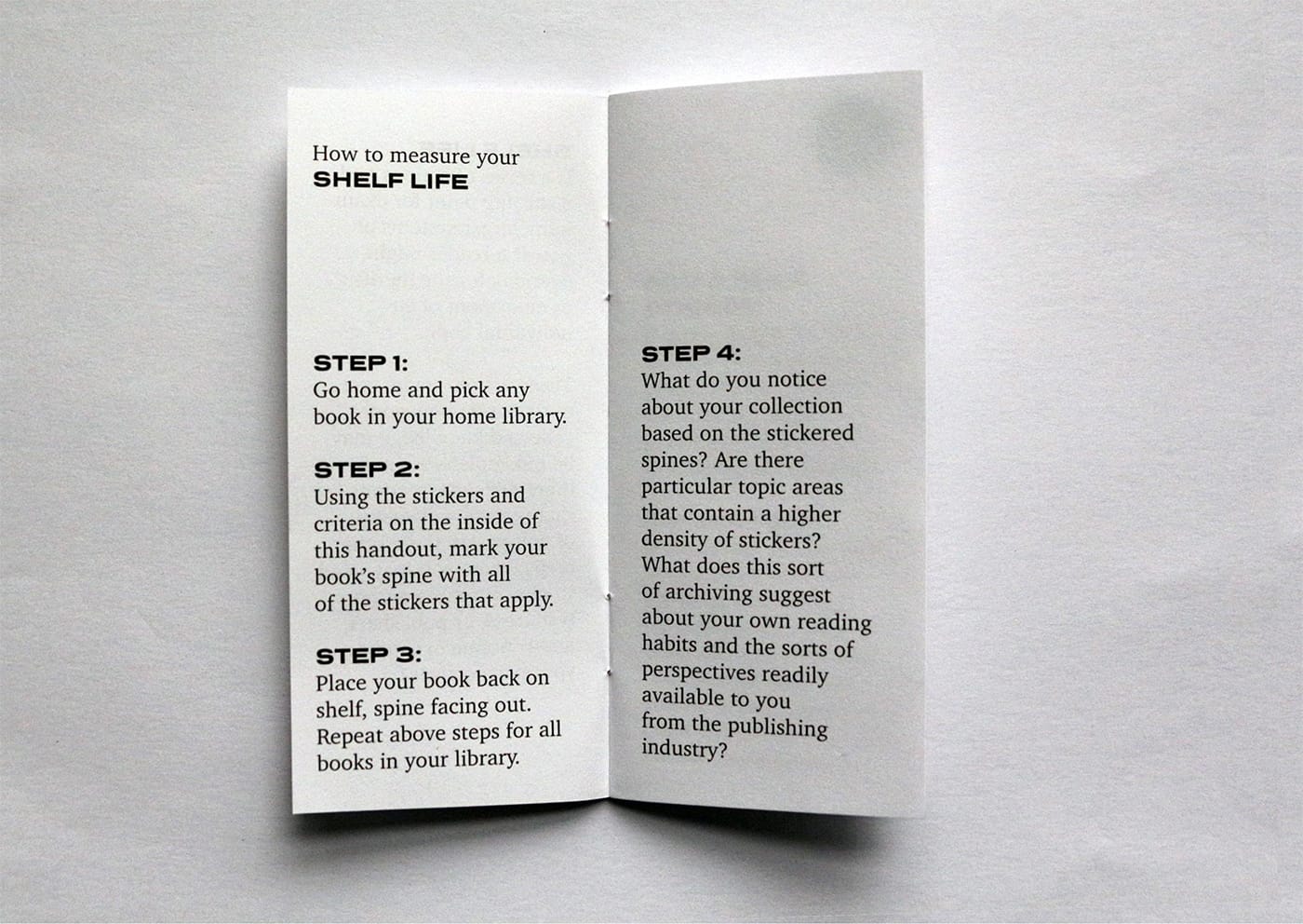 Check out the Shelf Life take-home project here. Additionally, Shelf Life can be found at the LA Art Book Fair with Sming Sming Books in April.