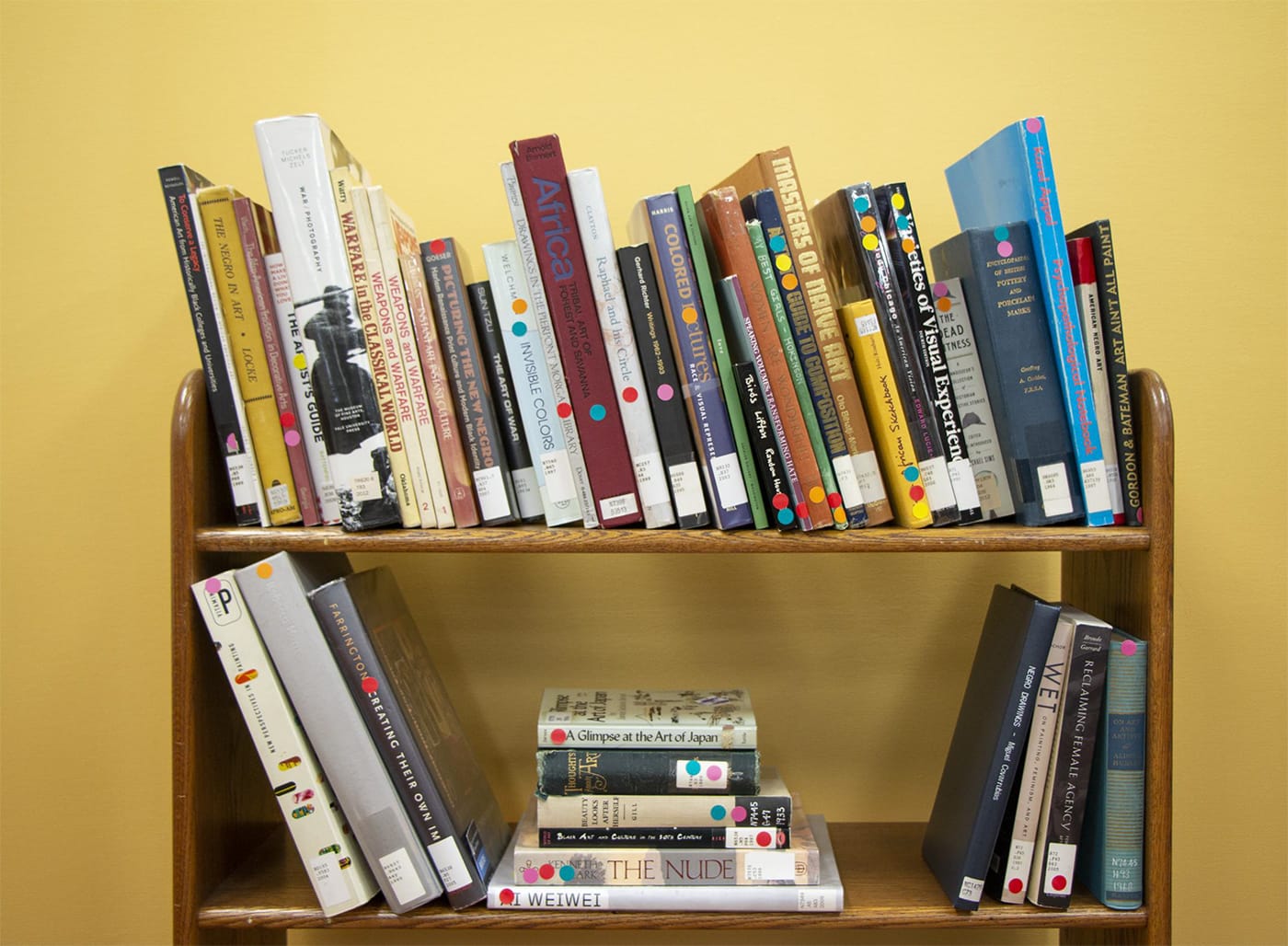 “The sticker colors correspond to categories that ask us to begin looking at who the presumed audiences are for texts, the voices that are centered in narratives, and who is granted the authority to publish,” said Teruya. “We deliberately created categories that ask people to color mark that which is usually normative and therefore invisible, rather than people and their identities that are usually marginalized and hypervisible.”