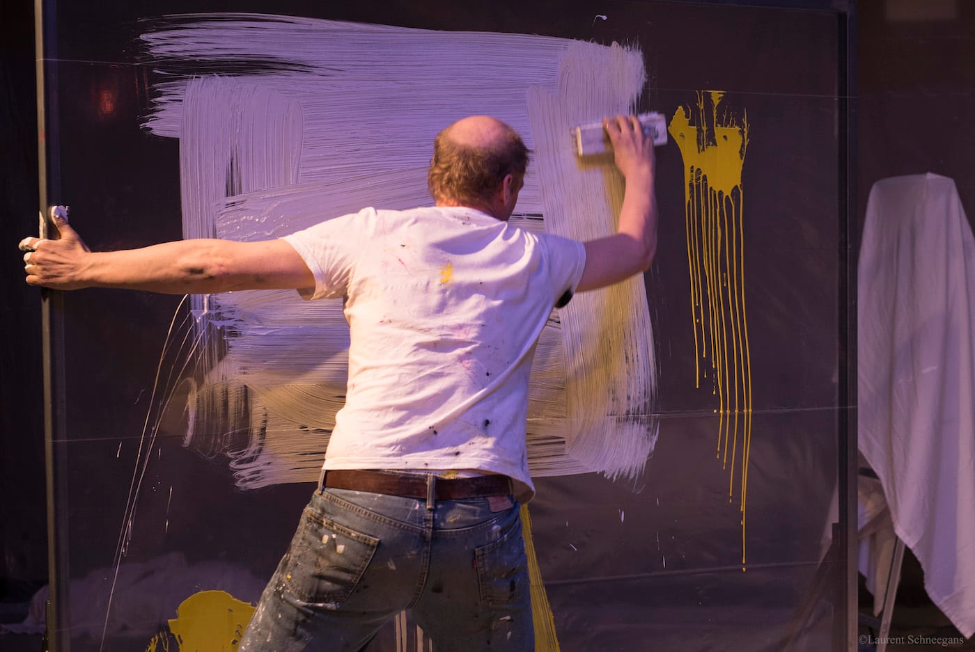 At a talkback, playwright Fabrice Melquiot and director Paul Desvaux, who commissioned the text, spoke of Krasner as the driver of their interest in the material, which is hard to square with the play, focused entirely on Pollock and his spectacular death. The play says nothing of the next 28 years that Krasner lived post-Pollock.