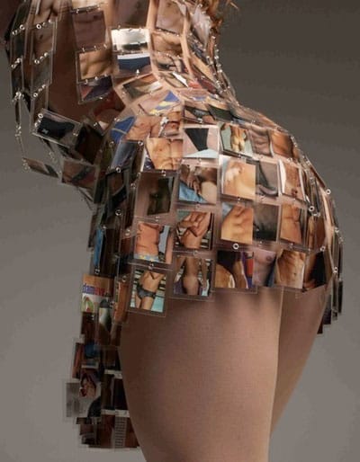 Her most interesting creation thus far is arguably the “Meta Outfit”, constituting a dress, bag and boots composed solely of images of each respective garment. Displayed at the Whitney Museum of American Art last year, it exists somewhere between collage, craft and Post-Structuralist theory. Expanding on this concept of the Meta Outfit is her “Dirty, Dirty” dress, containing images of the body, almost literally allowing the wearer to embody the physicality of their corporeal selves.