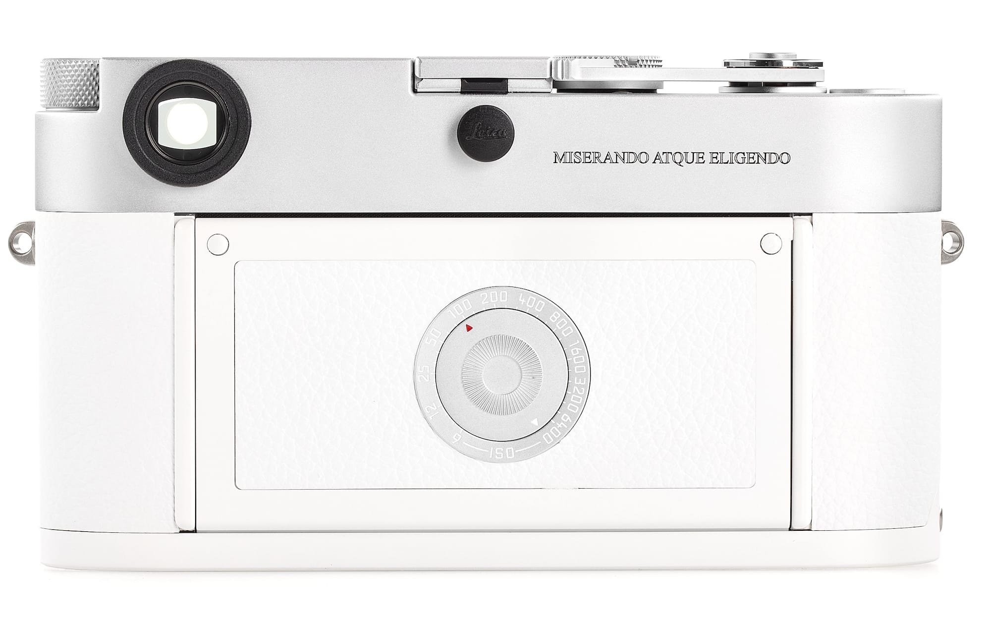 The camera kit features several unique elements that distinguish it from its base model, which retails for about $6,300 for the body and another $8,500 for the lens, before taxes. It carries a distinctive serial number of 5000000, which is valuable to collectors, and its white-painted top plate includes an engraving with Pope Francis’s motto miserando atque eligendo (which translates to “by having mercy and choosing,” drawn from a homily on the call of Saint Matthew by Saint Bede the Venerable). The flash cover is engraved with the keys of Peter.