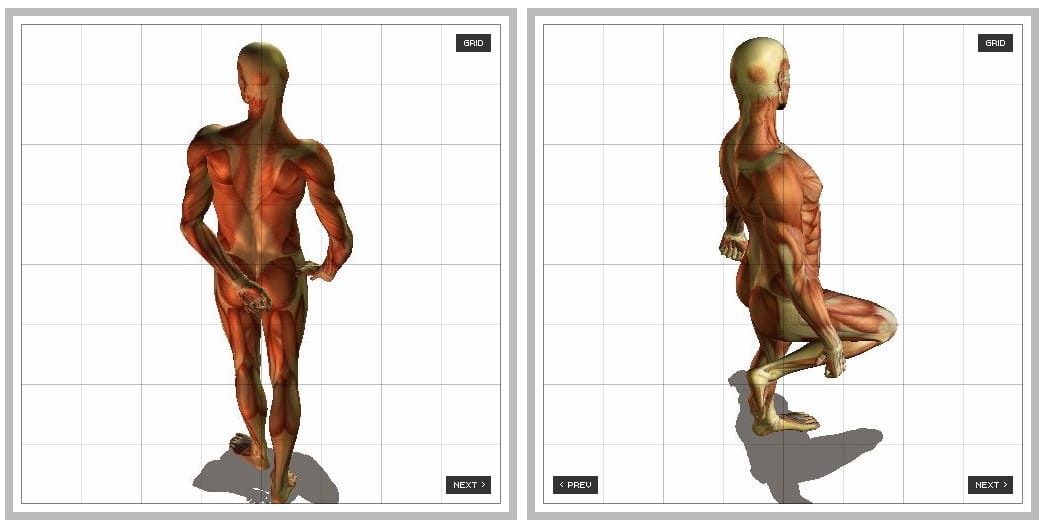 Clicking through the 30-second and random pose viewer sections of the site, the male and female figures stretch into a variety of poses, seen from behind while running into the blank distance, sitting on invisible benches and standing around nonchalantly. While they may not be the exact poses you’re looking for, each is a cool exercise in picturing the human figure. The somewhat grainy muscles are helpful for guidance, but not exactly educational in anatomical terms.