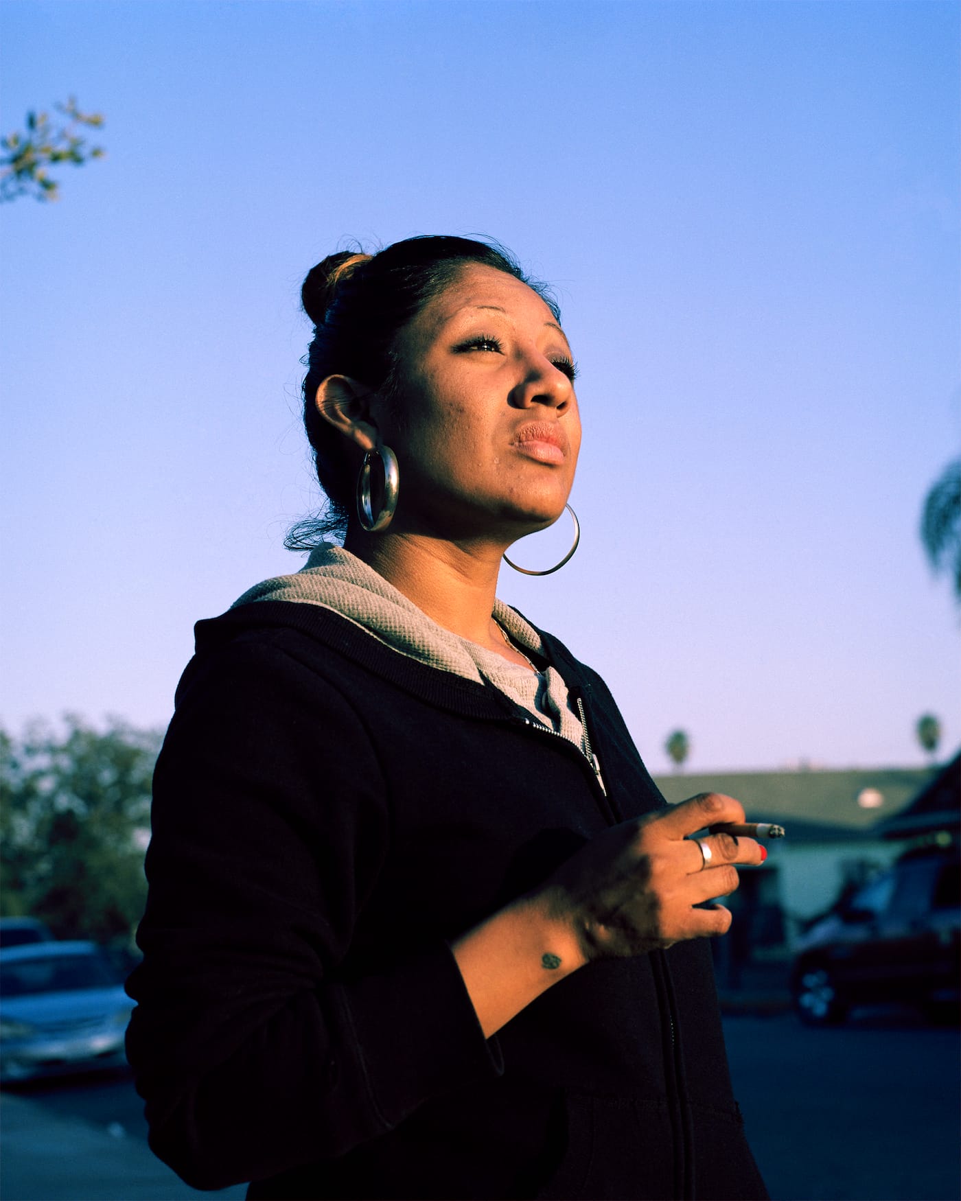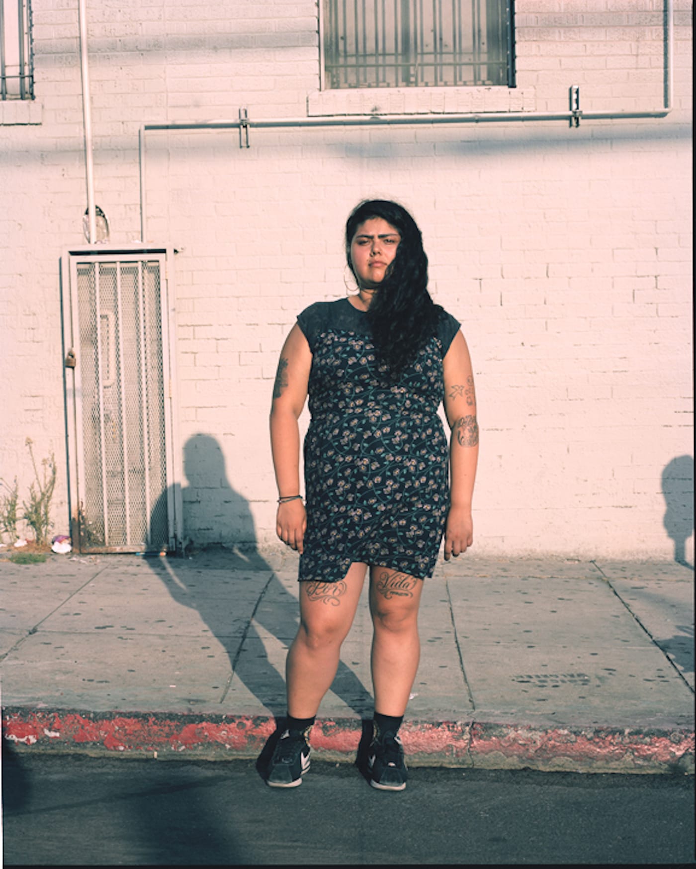 Montana captures Sarah’s figure and the long shadow cast behind it with the eye of someone who isn’t afraid to take in the complexities of her subject and her surroundings. The photograph takes on more meaning with the context, as if Sarah’s furrowed brow has less to do with the weather and more to do with the things she sees happening in her neighborhood every day.