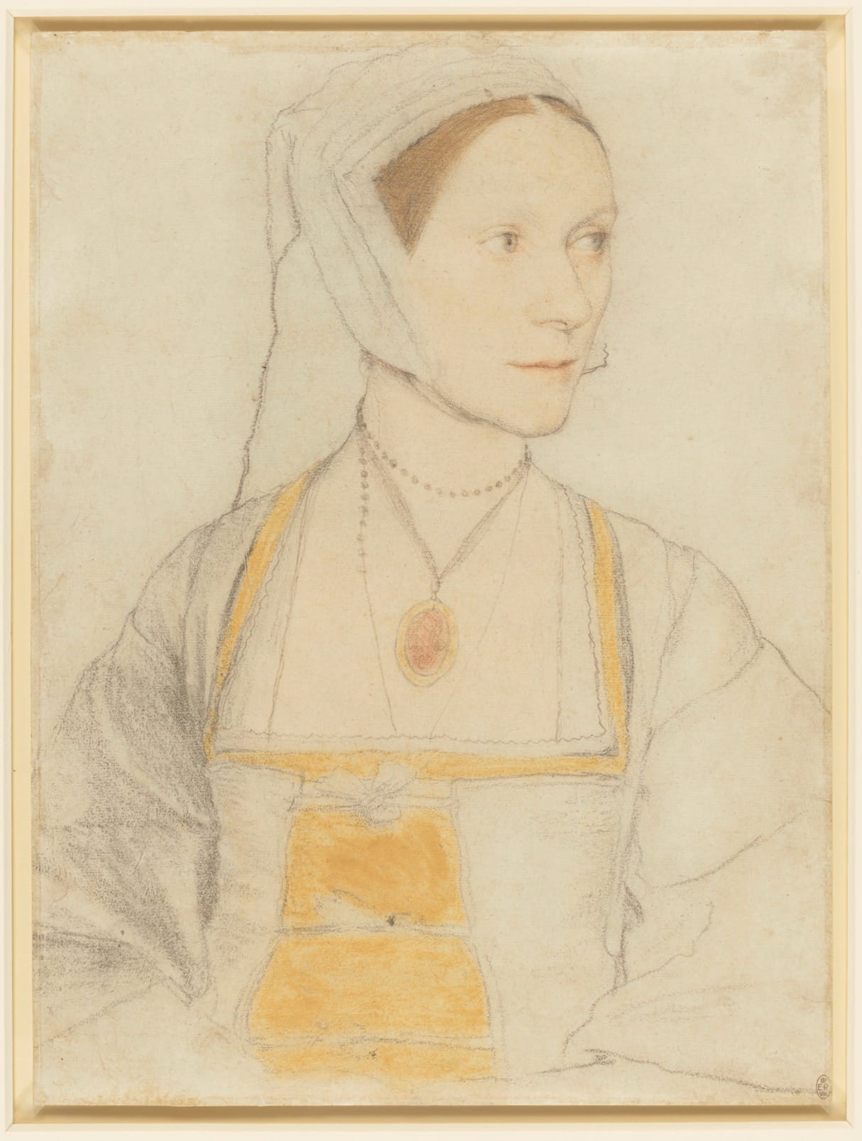 The earliest portrait of a woman in such a state of grace in this show is by Hans Holbein, and it is one of his most delicate pencil drawings, with color chalk heightening. The pregnant condition of Cecily Heron, Sir Thomas More’s youngest daughter, captured in 1527 or thereabouts, is not over-emphasized — she is wearing a loose gown, which promises to billow in the wind — but nor is it disguised. It is entirely and appropriately present and unashamed. Other portraits of around this time are more pridefully forward-thrusting – that of the formidable Mildred Cecil, for example, she whose husband was chief minister to Elizabeth I.