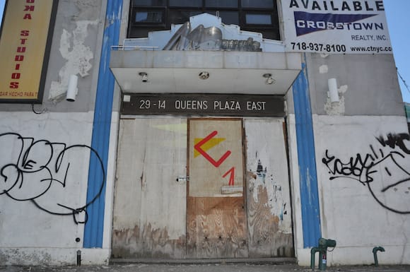 I collected Veken and we darted out with Sanner to the E train and ran into Marisa Sage of Like the Spice gallery who showed up to support Jenny Morgan, one of the featured artists in the group show. Flash forward and half an hour later we surfaced in Long Island City, where we immediately came across a large piece by street artist MOMO on an abandoned building at a busy intersection. It was perfectly placed and his geometry worked perfectly in the crazy chaos of that corner that included overhead subway tracks, streets that shot into each other at every angle imaginable and what felt like an endless cluster of quirky industrial buildings. We stopped for a moment to take in the scene and then walked over to Flux Factory for Man Bartlett’s first New York solo show.
