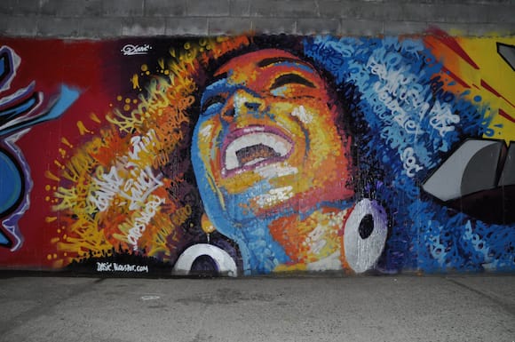 Walking towards Grace Exhibition Space we continued our tour of street art and came across murals and pieces that looked familiar from various Flickrstreams I monitor but things I hadn’t yet seen in person. There was one stretch on our way to Grace Exhibition Space that instantly flashed me back to Bushwick of a decade ago as we walked down a block where we encountered wafts of marijuana smoke and sketchy men hanging out in or near cars parked on the street. I remembered how dangerous this whole neighborhood once felt at night and how this was the first time in years that I had felt I had walked into a possibly precarious situation. I didn’t miss that sense of fear that was once always part of nightlife in the neighborhood.