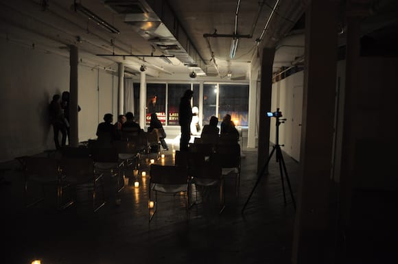 It was only 9:10 at this point and I only had one show left on my agenda, Rob Andrews’ performance at Grace Exhibition Space, which the invite promised would continue until 11:30 pm. We walked out with Wagner and Hoggard and tried to have dinner together at Roberta’s pizza restaurant down the street but the the host told us there would be an hour wait. We walked out of the establishment and Barry was the first to respond, “Bushwick is over.” He followed up with a tweet to let the art and tech worlds know. We parted ways soon after deciding that we didn’t want to settle for a mediocre meal at someplace like Life Cafe.