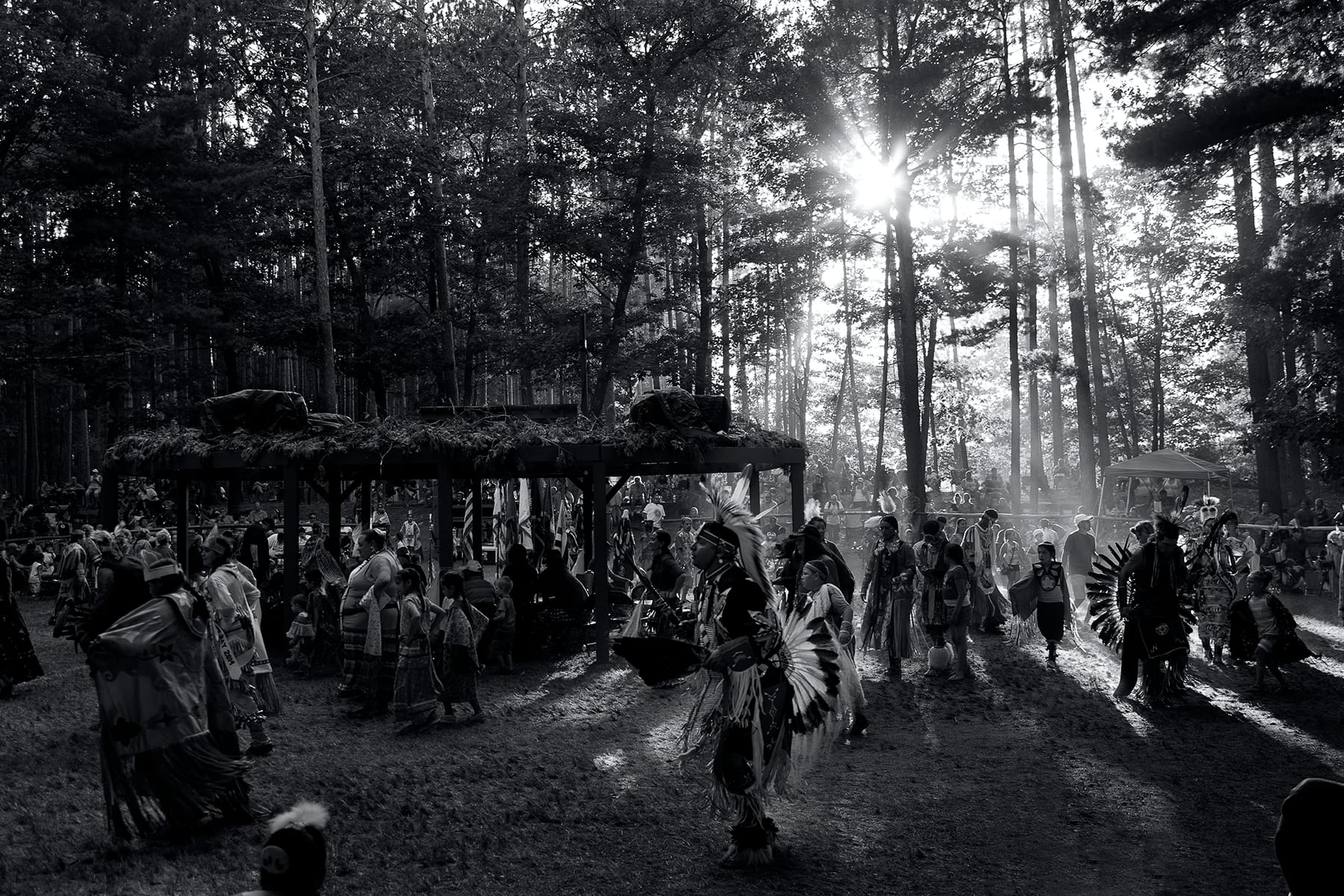 Seven of Leah Rose Kolakowski’s experimental photographs punctuate the wall in the next room with striking portraits of Native women and scenes from powwows. The dreamlike crowd imagery from the Gathering of Nations powwow in Albuquerque, shown in "Gatherings" and "Gatherings II" (both 2018), looks like it’s been digitally manipulated. But the layering effects are actually the result of in-camera techniques, skills the artist honed while studying darkroom photography and alternative processes at the Pennsylvania College of Art and Design. A member of the Keweenaw Bay Ojibwa living in Santa Fe, Kolakowski says her photography is “a way to express pride and appreciation of the beauty of not only my tribe, but other tribes.” She adds, “I like to think of my art as raising awareness that we’re still here, we’re still vibrant. We’re not a dying culture. We’re very diverse.”