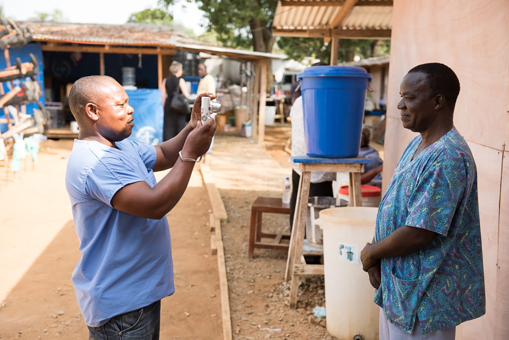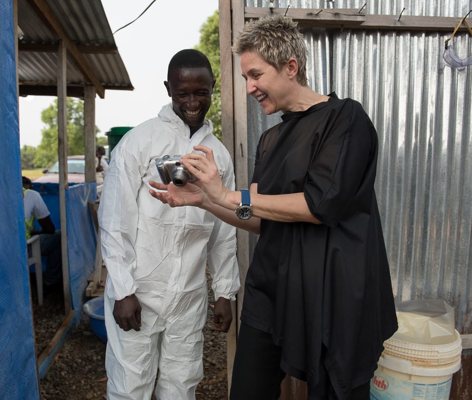 Back in 2014, during the Ebola outbreak, the Los Angeles-based artist and Occidental College professor Mary Beth Heffernan came up with a seemingly simple, yet ingenious solution to help patients feel more connected to their providers. With camera in hand, she went to Ebola Treatment Units in Liberia and took warm, friendly portraits of the medical staff and attached the photos to their suits, over their hearts — “to convey that the care is offered from the heart,” Heffernan explained over email. “Before taking the photo,” she said, “I asked the healthcare worker to offer the smile that they wished the patient could see.” Not only did patients report feeling more cared for, but healthcare workers also found the work environment more tolerable; as one doctor put it, “It makes it feel more like I am working with people, with my team, instead of inanimate objects.”