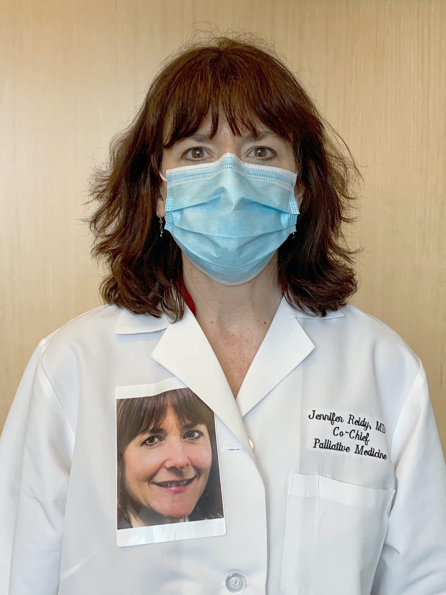 Brown-Johnson and Heffernan have been in communication daily, “sometimes multiple times a day,” to evaluate the project’s roll-out and reception. “One patient actually said, ‘I love your picture,'” said one of the Stanford RN nurses, Anna Chico, who is trying out the portraits. “It enhanced my interaction with my patients, as they were able to see me and not just a full suit of PPE.”