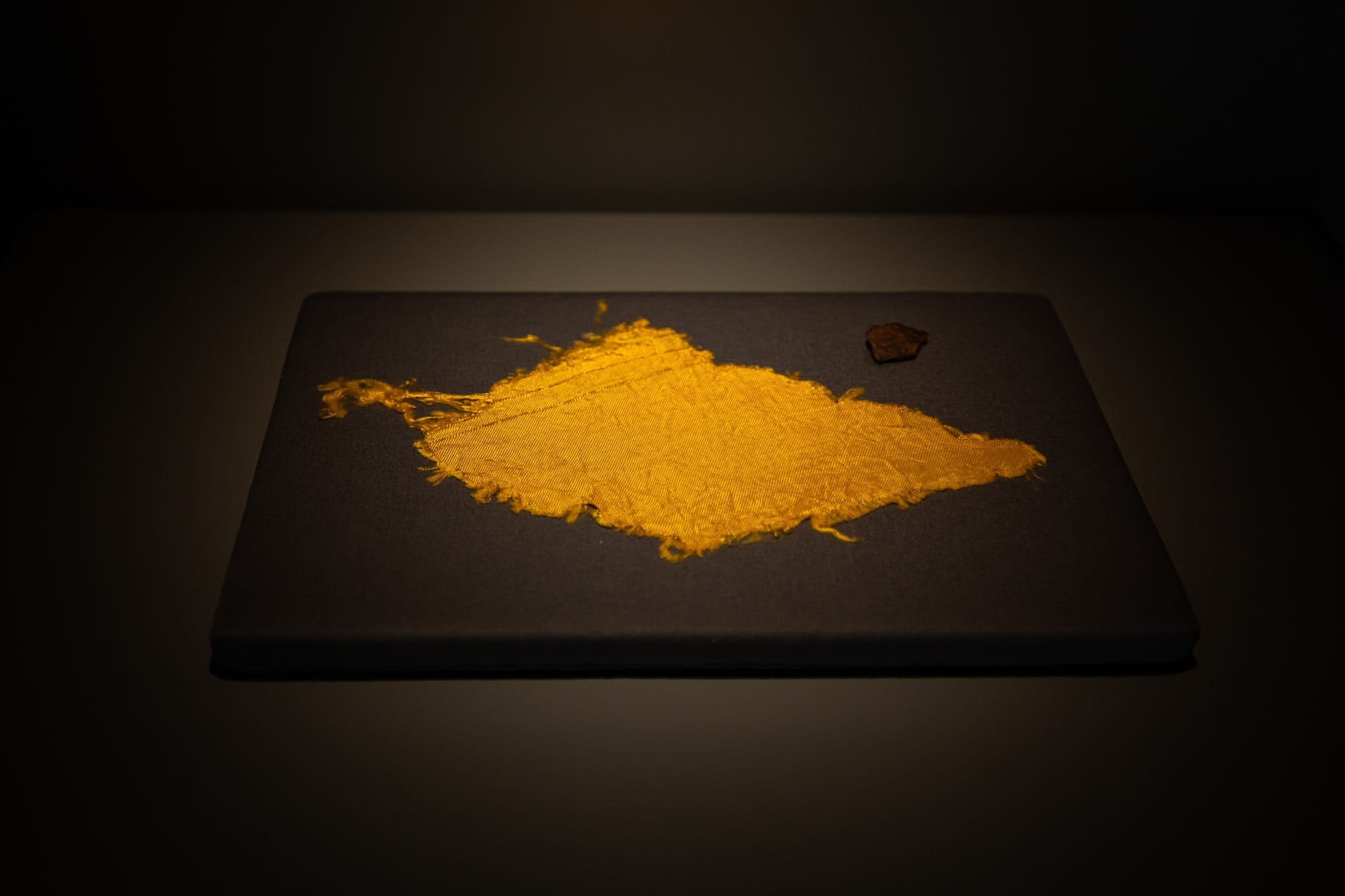 Sometimes, however, Phinthong can expect too much of his material’s histories. Leaving the exhibition, one passes an inset vitrine housing a frayed shred of parachute cloth, glimmering in the dark. It once belonged to a British prisoner of war and is on loan from the Changi Chapel and Museum; perhaps Phinthong is commenting on the fall of Singapore in World War II and its subsequent building of military might, but the connection is unclear. Lingering with the fragment’s beauty, I also oddly found myself wanting a “Spoon” for myself. I even asked the museum guard where I could find one, to no avail. But why did I want a piece of unexploded ordnance, anyway? Because it was now art (and not inexpensive art)? I felt guilty in thinking about its value, both artistic and monetary — an effect of Phinthong’s practice that’ll stay with you.