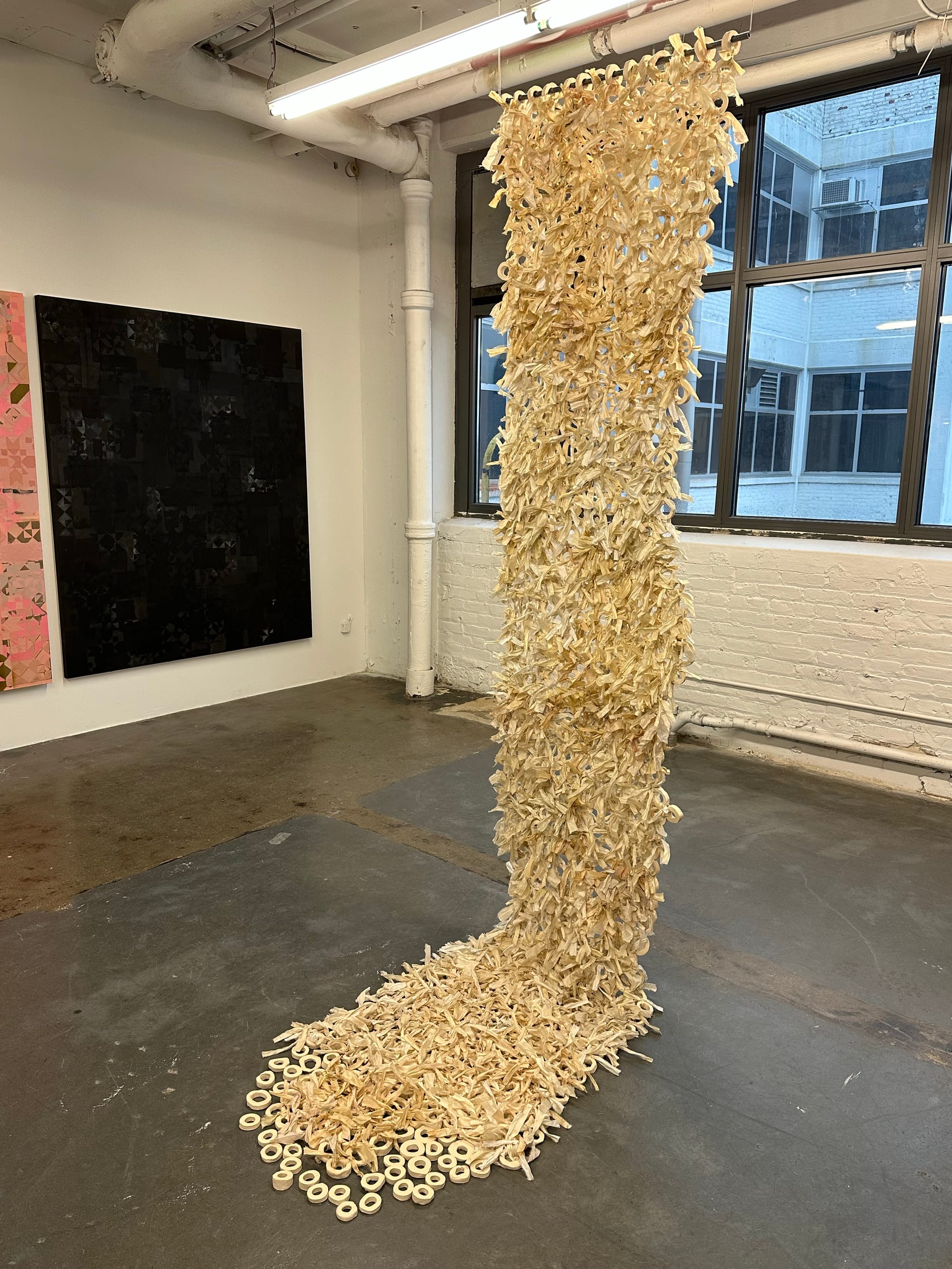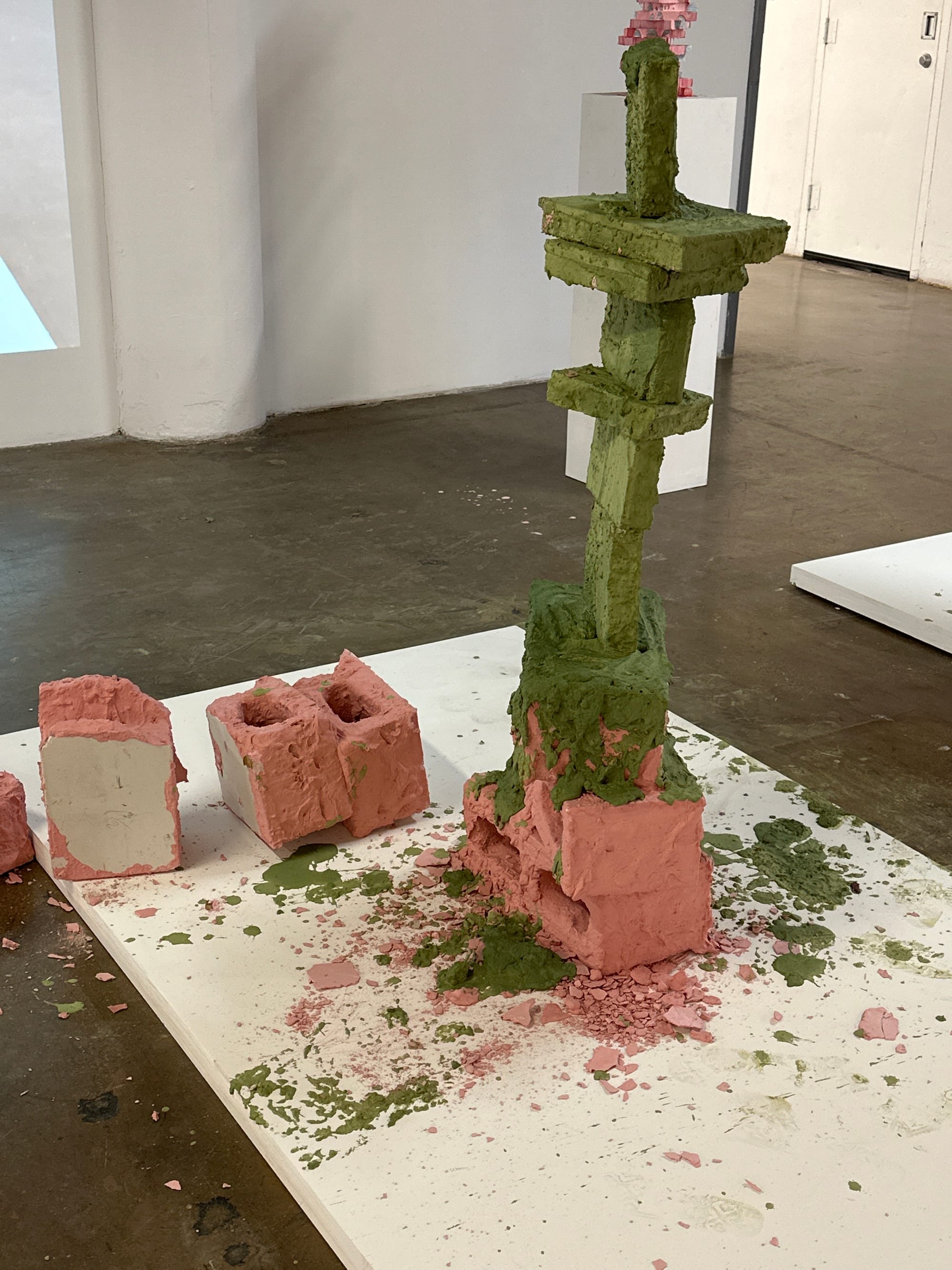 In other words, acknowledging the mess and its contradictions is a crucial step not only in disrupting our own stagnant inner status quos, but also in challenging those of others. We break the status quo when the wealthy White upper class starts to recognize their own inner messes and the festering contradictions between their genuine desire to do good and their denial about the harms they inflict. Pratt’s MFA students drew viewers in with their unique visual metaphors for messy places.