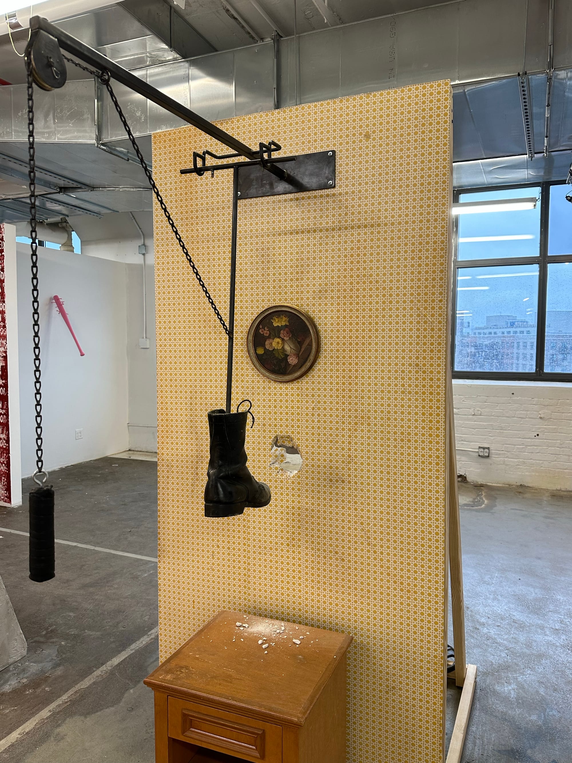 In 1981, Ronald Reagan deadpanned to a convention of carpenters, “Status quo, you know, is Latin for 'the mess we're in.'” Technically, status quo means “state in which,” but the joke is resonant because of the toxic stagnancy of 2022 and 2023, when these Pratt MFA students were developing their work. It may seem bizarre to open a review of Pratt’s MFA Fine Arts thesis show, Part 2, with a bad joke by a man who declared ketchup a vegetable, refused to say AIDS, and widened the gap between rich and poor. But this show is all about depicting the mess we’re in as the toxic capitalist, racist, misogynistic, transphobic status quo drags on in the United States and world is caught in such a precarious and discombobulated place. Why aren't we changing it?