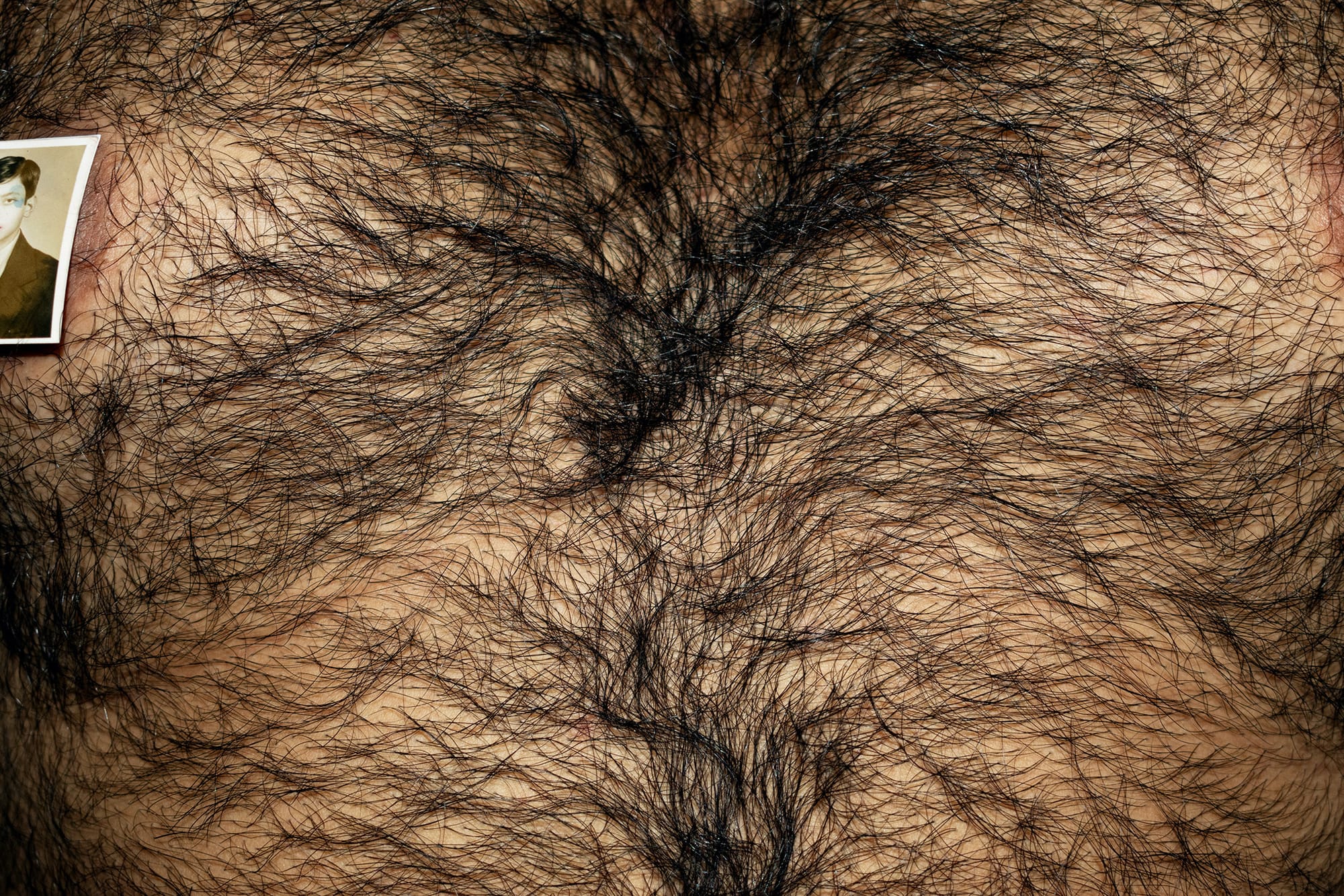 His father's presence is keenly felt on this queer landscape, while a small photo of an unknown person from a family archive covers his own nipple in a close-up photo of his chest, “Close to my heart, Brooklyn, NY” (2023). This latter work plays with notions of anonymity in gay culture. Is it healthy to let people we barely know into our most intimate landscapes?