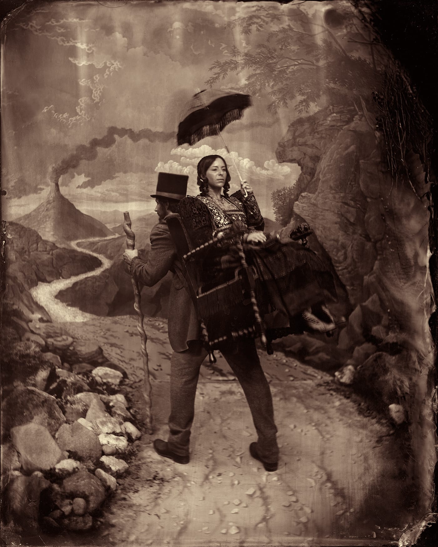 Berkman conveys a deep understanding — and even fetishization — of the mechanics of analog and chemical photography, but has still managed to capture a speculative bit of history with Predicting the Past—Zohar Studios: The Lost Years, a book just published by the Los Angeles-based Hat & Beard Press. The expansive collection of images presents the colorful cast of characters in attendance at the mythical Zohar Studios, a 19th-century Lower East Side photographic establishment of the eponymous Shimmel Zohar — an Eastern European Jewish immigrant who came to the United States in the 1850s (according to detailed archival materials included in the book’s back matter).