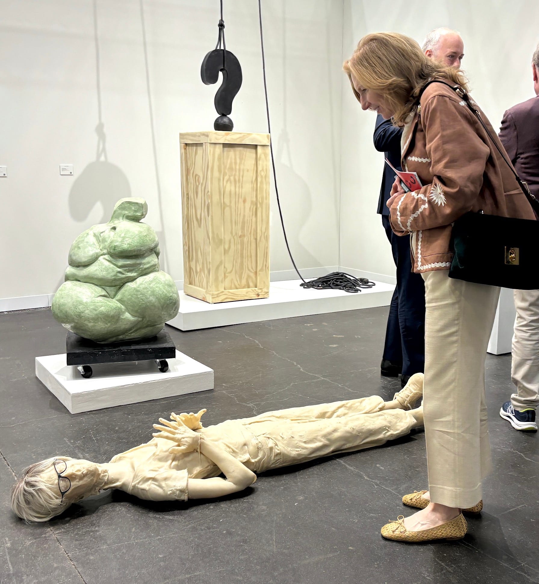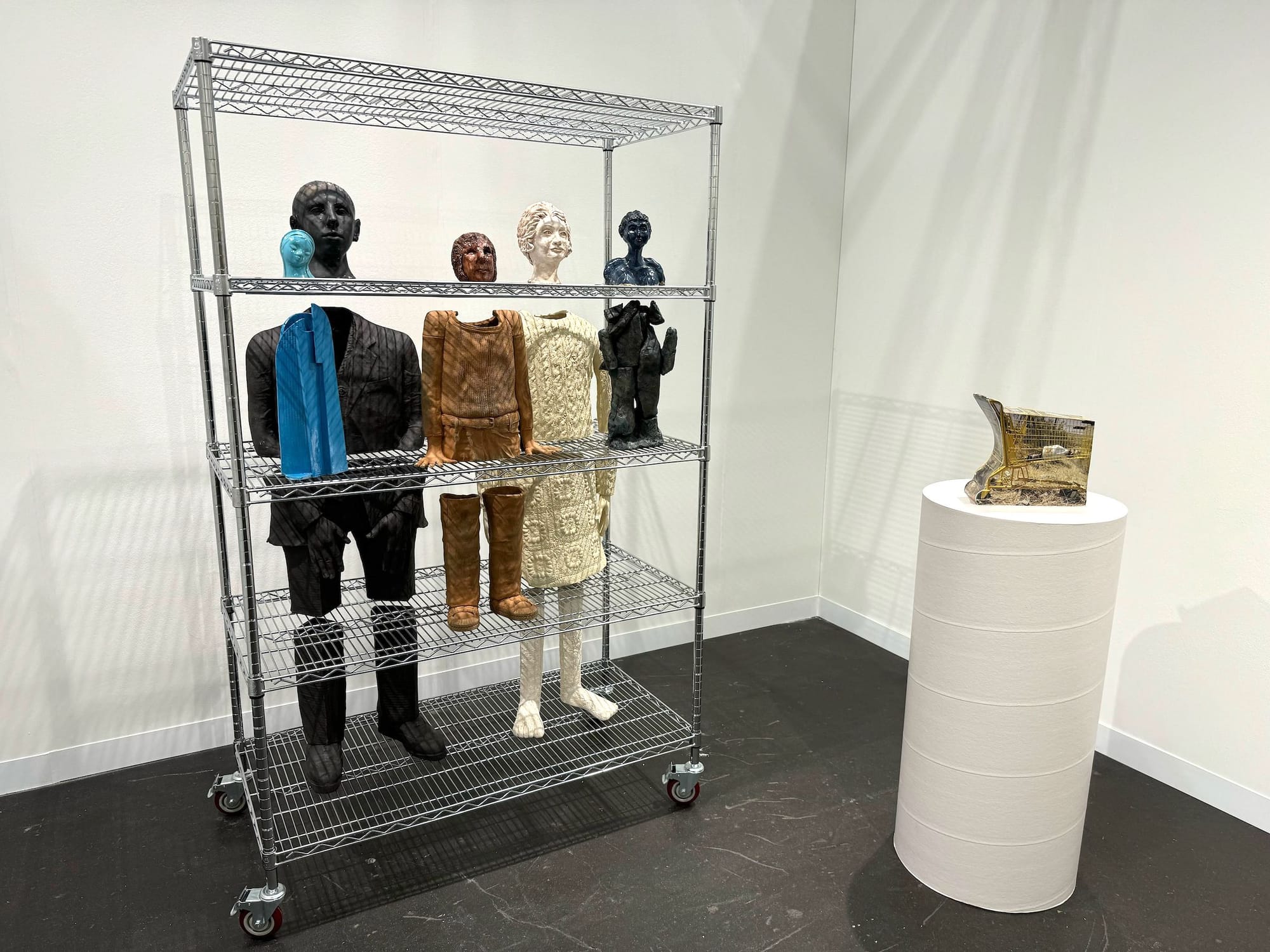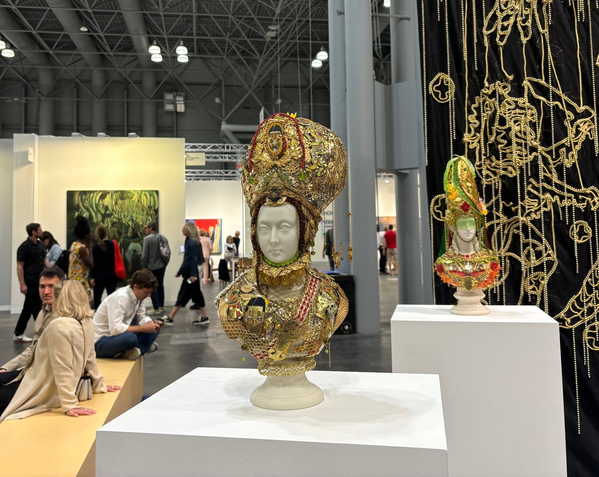 To create “Chariots of the Gods” (2009), Hew Locke visited the British Museum’s since-shuttered Museum of Mankind, where its non-Western “ethnographic” collections were once housed. The works by Locke in the Armory Show's Platform section, including two sculptures from his Souvenirs series (2018–ongoing), reference everything from the Benin Bronzes to Inca mummified remains to jeweled statues of members of the British royal family, effectuating a clever critique of imperialism and empire. Today we recognize the artist’s attention to detail and thoughtful concept by noting that this installation would probably get at least an eyebrow raise from Manhattan District Attorney Alvin Bragg, who has been busy hunting looted antiquities all over town. —VD