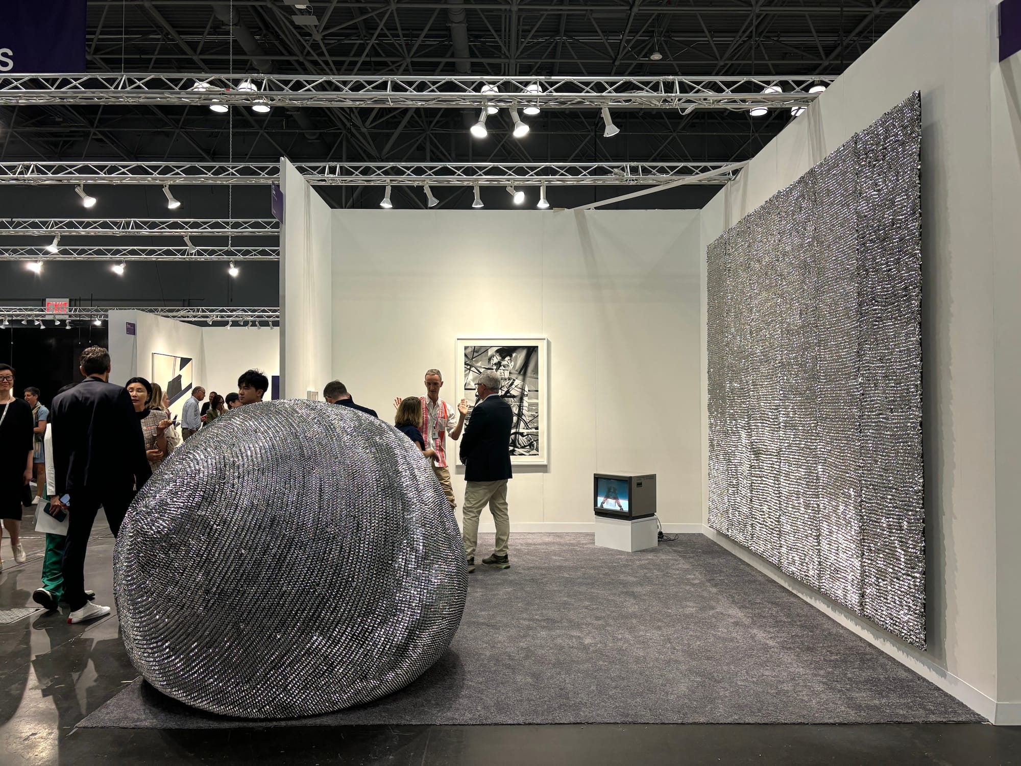 This category was neck-and-neck this year, as more than a handful of galleries got their glitz on with their sparkliest and in some cases most migraine-inducing inventory. Despite the glittery competition, the winner was without a doubt the booth of the Shanghai gallery Bank, presenting several of Oliver Herring's late 1990s–early 2000s knitted silver Mylar works. The immediate festive appearance of these pieces takes on a deeper significance when considering that they were conceived as a tribute to the drag artist Ethyl Eichelberger, who died by suicide two years after receiving an AIDS diagnosis. Like Eichelberger's legacy, Herring's sculptures shine on. —VD