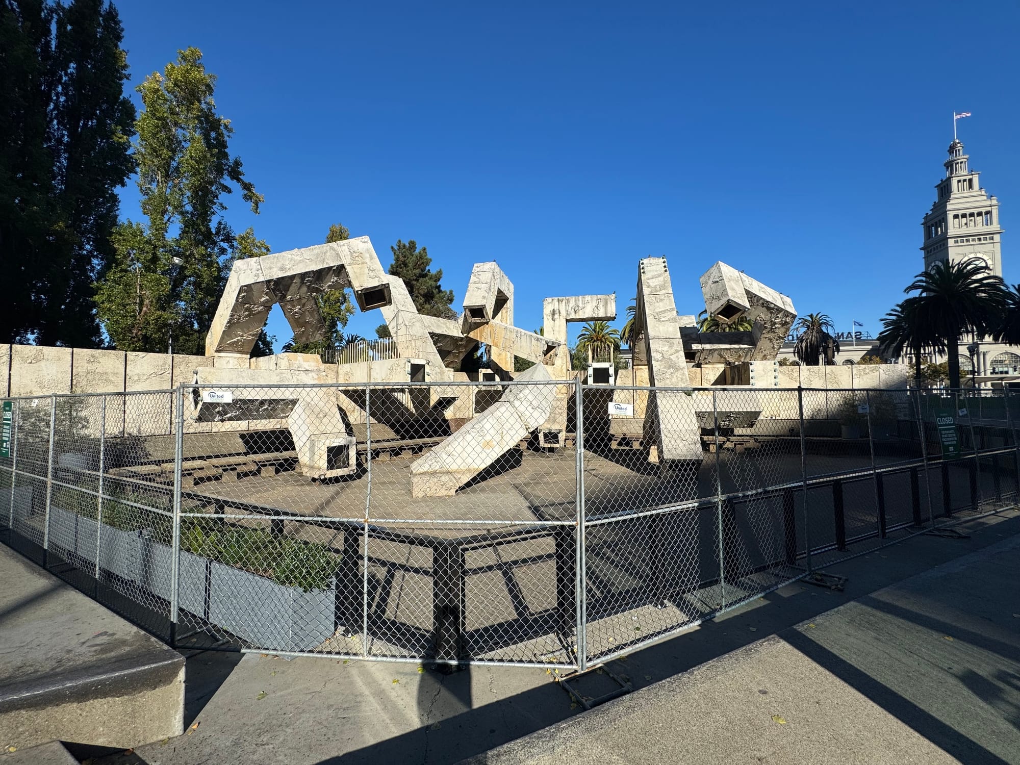 The jutting Brutalist fountain, created by 96-year-old Canadian sculptor Armand Vaillancourt in 1971, has long marked architect Lawrence Halprin’s Embarcadero Plaza and the surrounding structures, including the San Francisco Ferry Building. The work, also known as “Québec Libre,” was graffitied in 1987 by U2’s Bono and stood at the epicenter of the city’s skateboarding culture in the ’80s and ’90s. But earlier this year, the Board of Supervisors approved the creation of a multi-million-dollar waterfront park covering the fountain and surrounding area, drawing opposition from cultural preservationists, community members, and the artist himself.