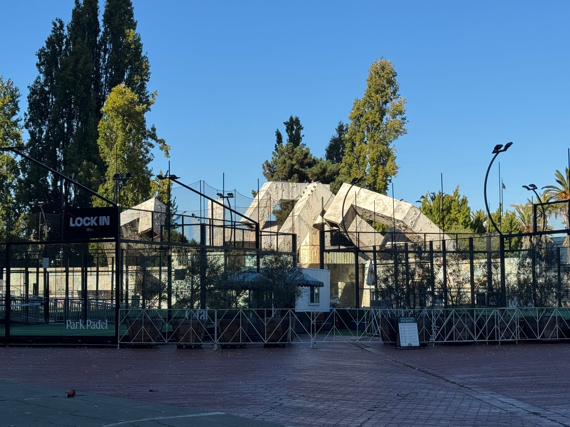 Today, there is no water in the fountain, and the city has cordoned it off with a fence. A tennis court almost eclipses it on one side. Nearby, the parks department has installed a towering sculpture of a naked woman created by Marco Cochrane at Burning Man in 2015.