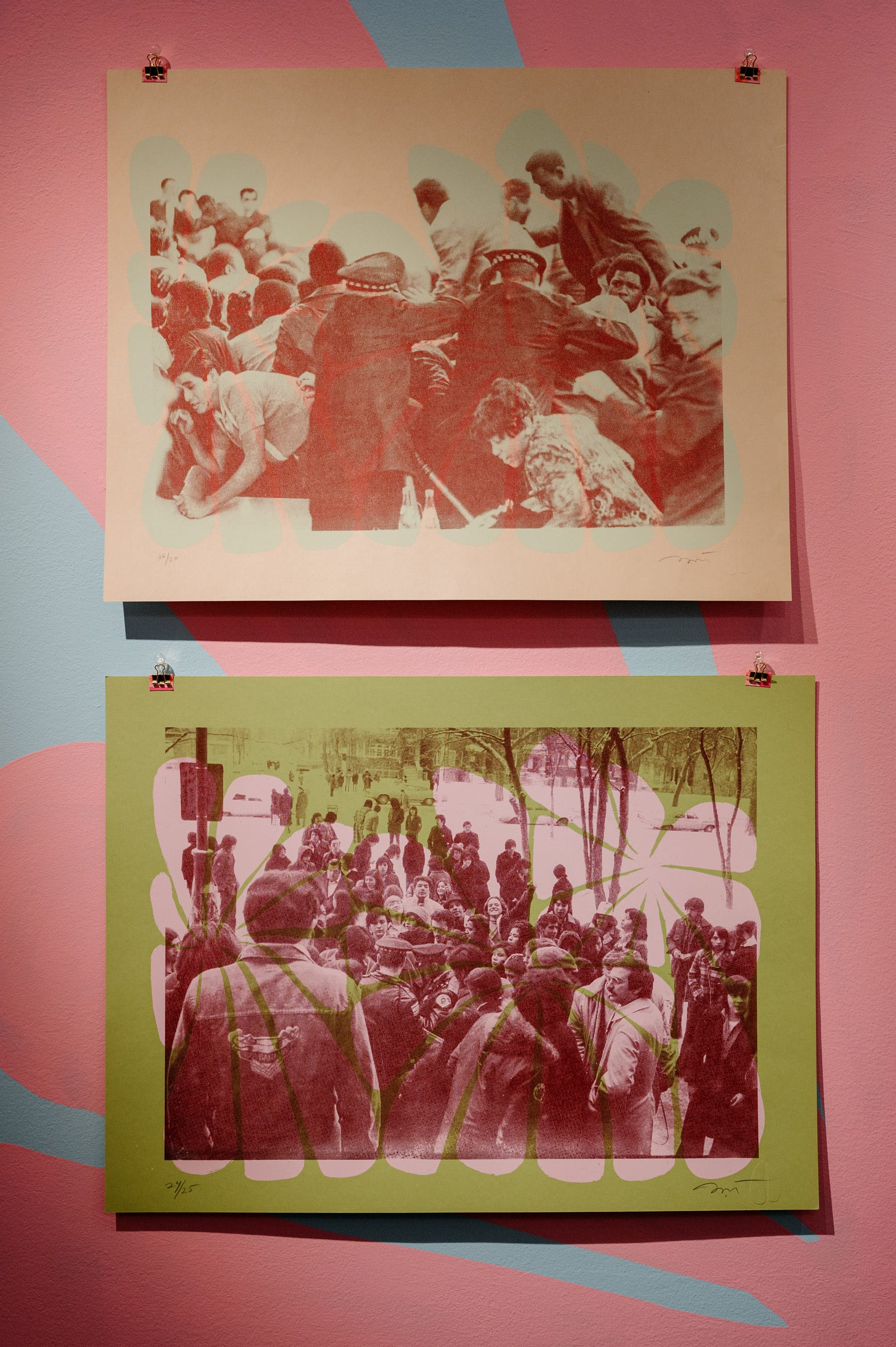 ANN ARBOR — Archives have the potential to be static and unengaging — especially those that range back into the pre-Internet era, when self-documentation was not the refined quotidian art that it is today — but artist and educator Nicole Marroquin has a gift for presenting archival materials in vivid color. With Care, an exhibition at the University of Michigan's Institute for the Humanities Gallery, places Marroquin's ceramic and print work in the context of her research into student rebellions in Chicago public schools from 1968 to 1980 alongside the documentary photographs of Diana Solís, an influential Mexican-born artist, teacher, and friend of Marroquin.
