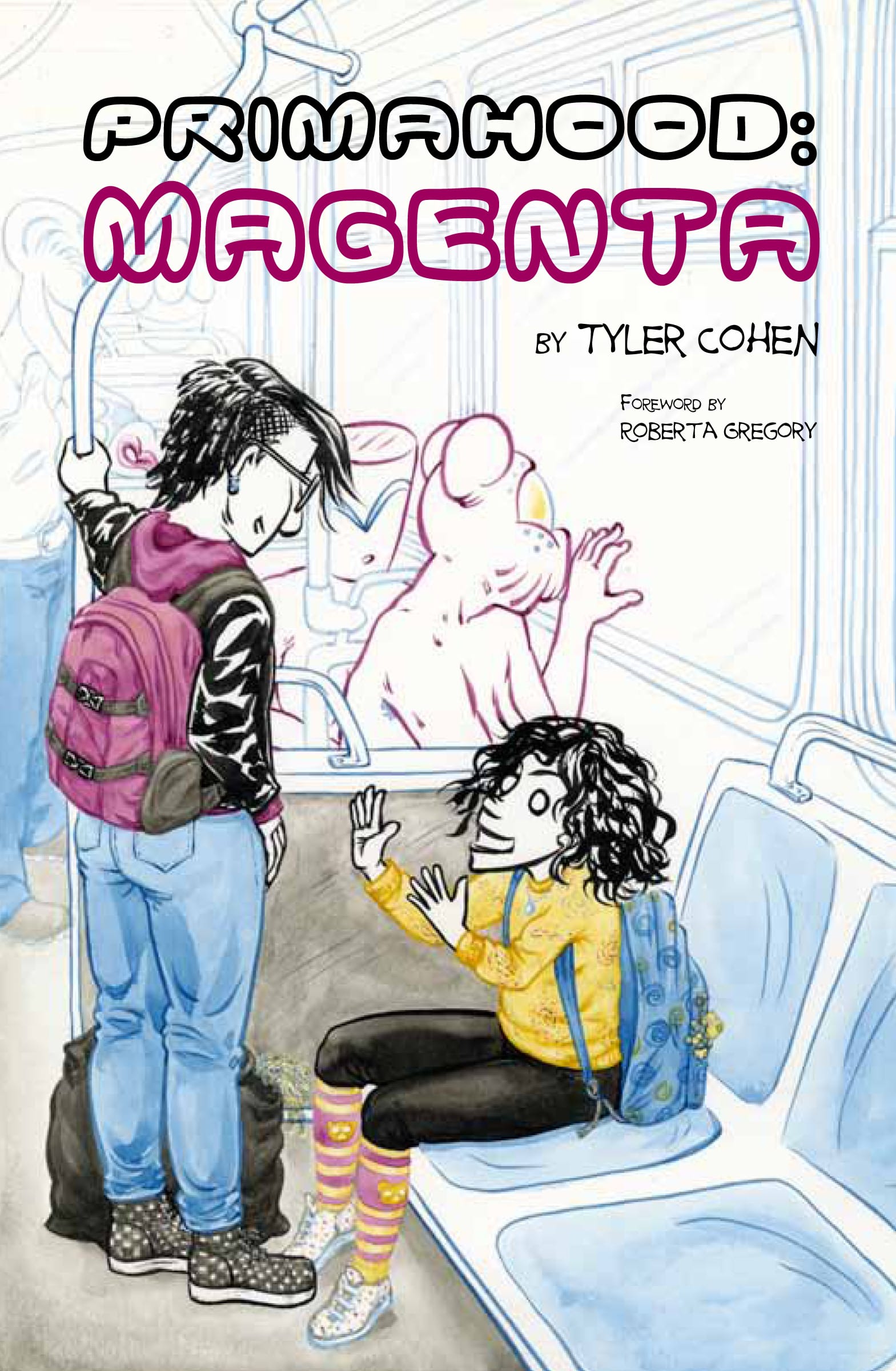 The Primazons often infiltrate the “real world” in Primahood: Magenta, walking in the background and at times interacting with Mama Pants and Nene. The title of the graphic novel represents the melding of these two worlds. “I’d been calling the issues Primahood — mixing Primazon and motherhood, childhood, neighborhood,” Cohen explained. “The Magenta comes from my primary (india) ink color when drawing the Primazons — a color that is both assigned to girlhood but also, when used thickly, evokes blood. From pure ink to thinned wash, the color shifts from blood to pink.”