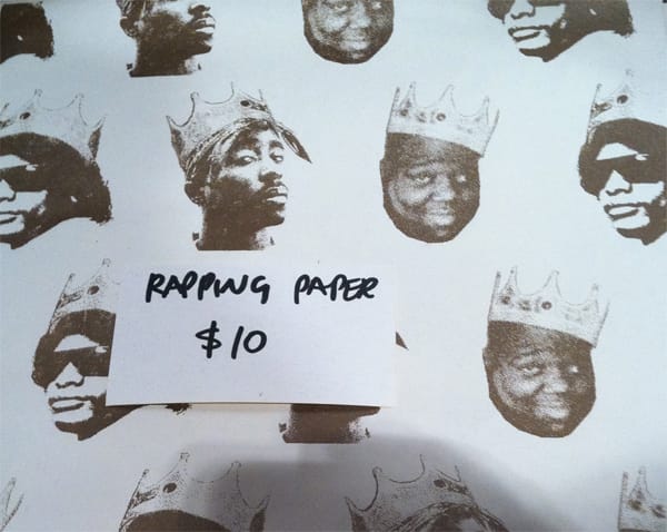 With every item under $50, Prints Gone Wild is more like a bunch of merch tables at a punk show, which is rather appropriate as the opening night always has live music. On that note, one of my favorite items was Kayrock Screenprinting’s “Rapping Paper” (featuring a number of well-known rappers).