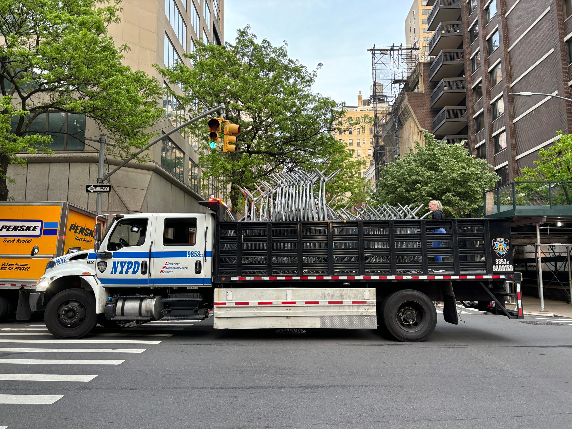 Metal barricades on an NYPD truck