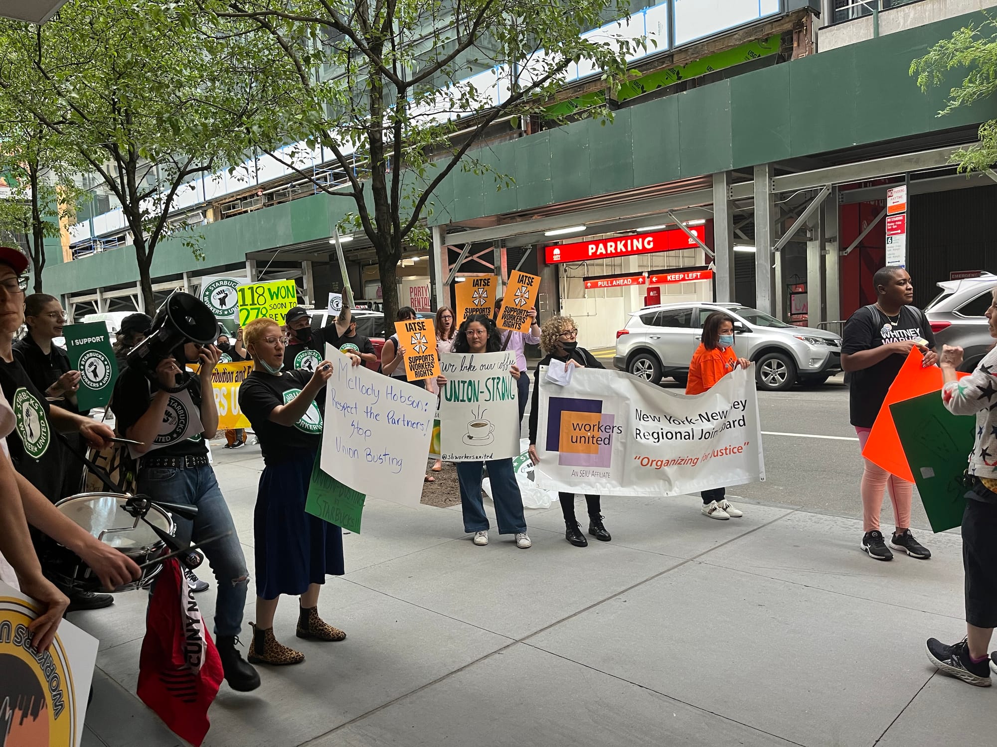But despite labor wins, retaining staff is still difficult and there is high employee turnover, according to Samy Dominguez, who works at the recently unionized New York City Roastery and attended the protest.