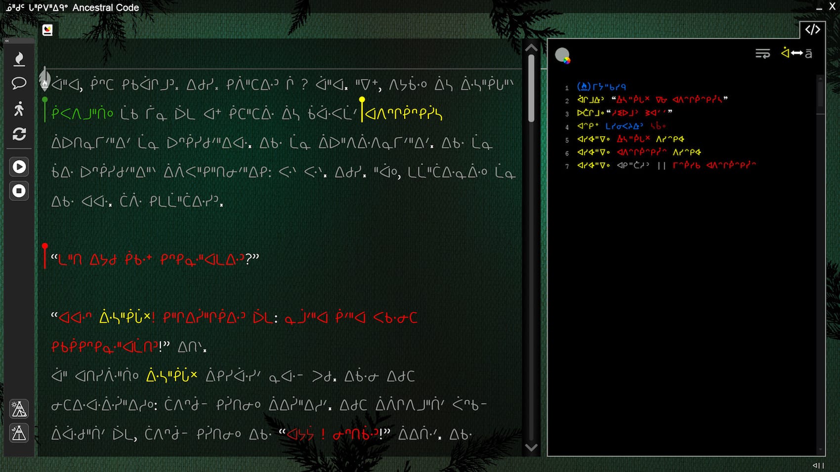 Corbett, in making Cree#, wanted to go beyond replacing English keywords (commands like “let” and “print”) with Cree keywords in a static list. For one thing, Cree is a morphemic language and he wanted Cree#’s signifiers to hold programmatic meaning at the syllabic level, which is highly unusual in programming languages.