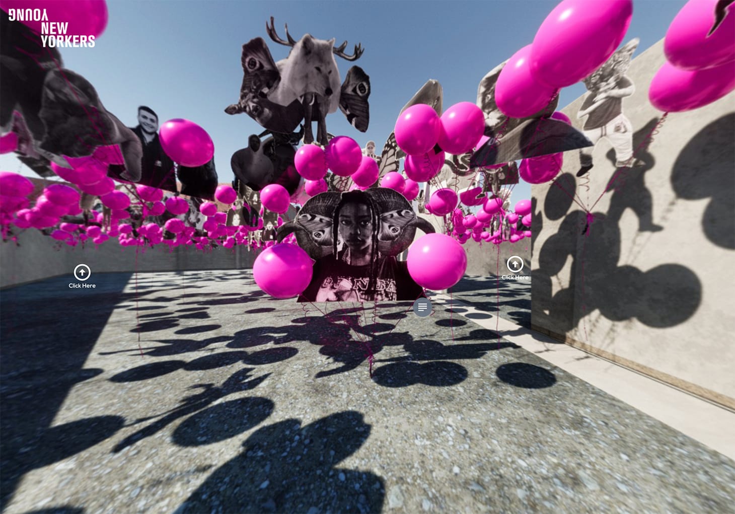 Against this background, about 100 Project Reset graduates presented their work last week in a virtual exhibition hosted by YNY and MoMA PS1. The virtual exhibition shows portraits of the graduates suspended with pink balloons over PS1’s courtyard. A click on the portraits plays audio recordings in which the graduates, all between ages 16-25, share their stories in their own voice.
