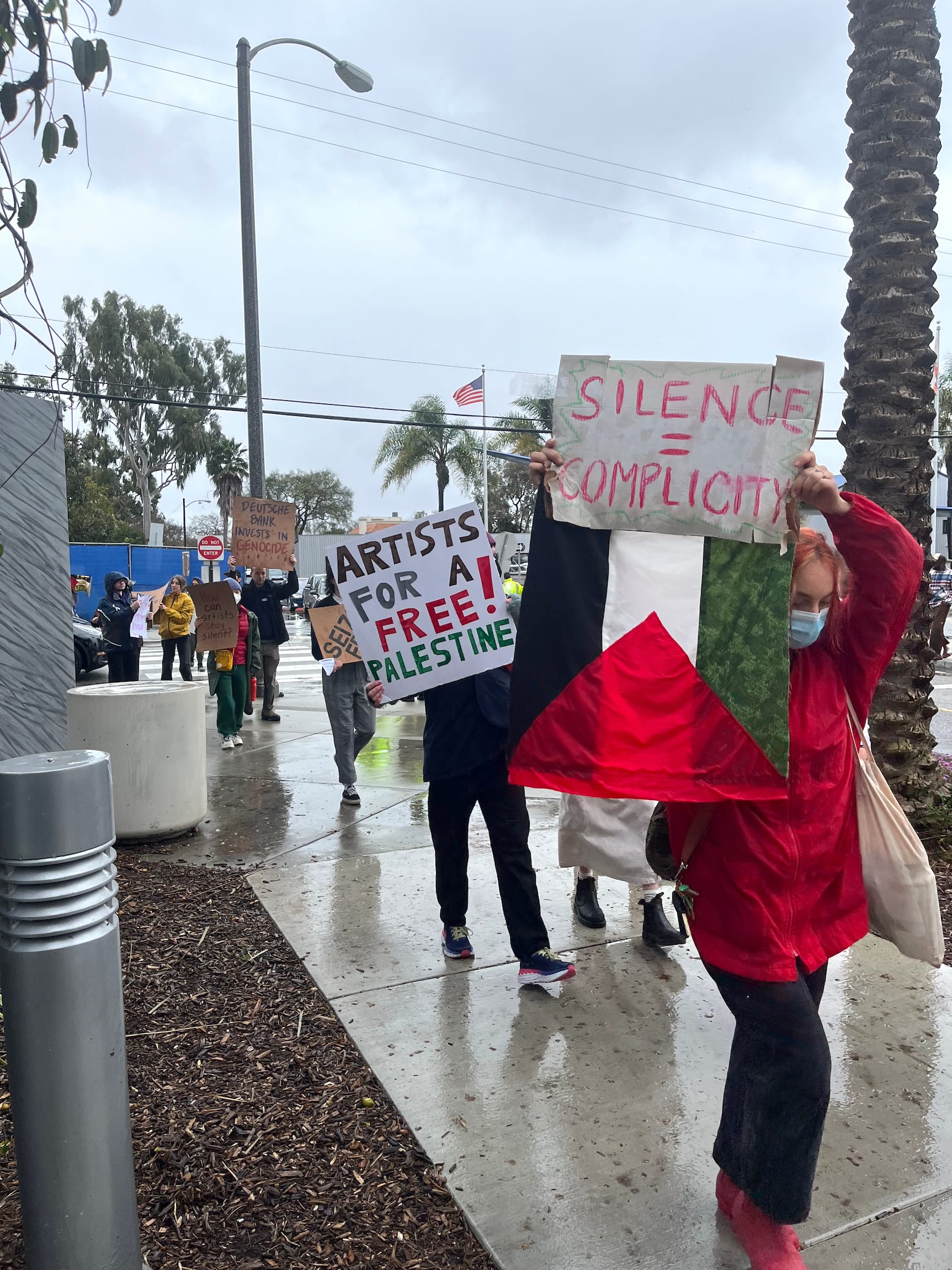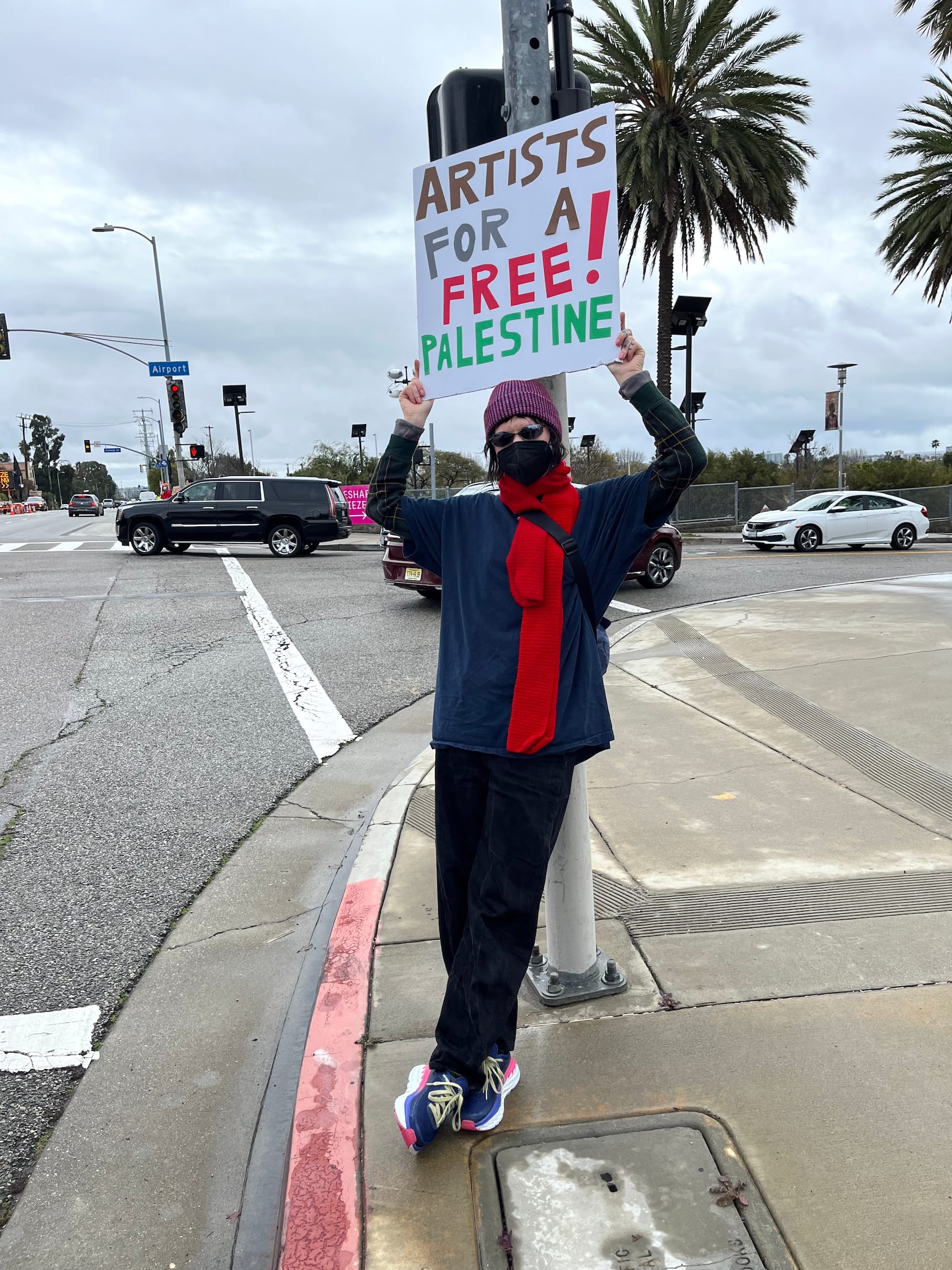 Another protester, 40-year-old LA local Evan Apodaca, stated that “art is used as a vehicle to hide wealth” and shared his experiences of being silenced by the cultural sector for his expressions of Palestinian support.