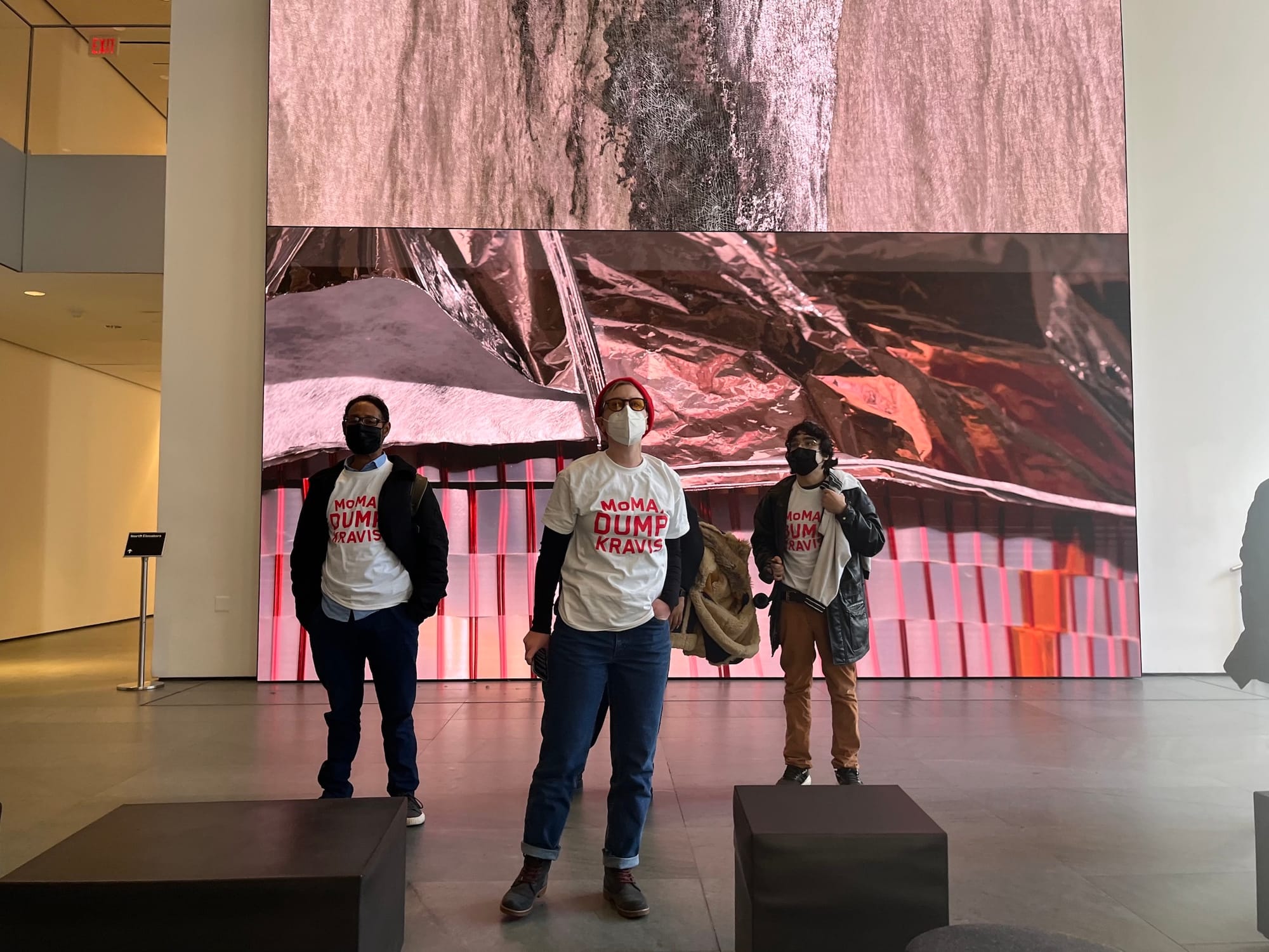 “This Valentine’s Day, we’re calling on MoMA to dump Kravis,” the pamphlet read. The Kravises have donated tens of millions of dollars to the Midtown institution and the name adorns the museum’s new performance space.