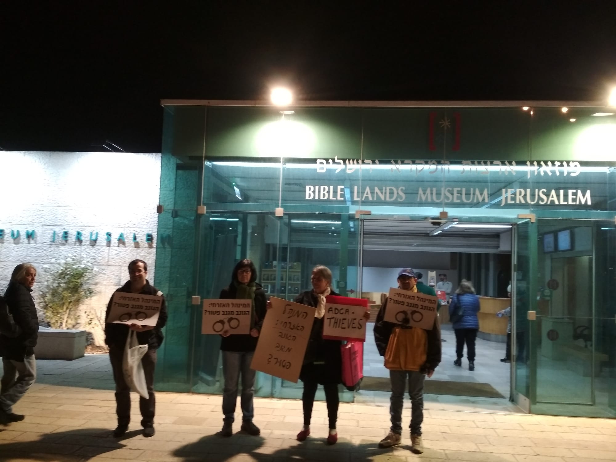 On Wednesday, January 30, a small group of Israeli human rights activists gathered outside the Bible Lands Museum in Jerusalem to protest the display of looted archaeological artifacts from occupied Palestinian territories in a controversial new exhibition.