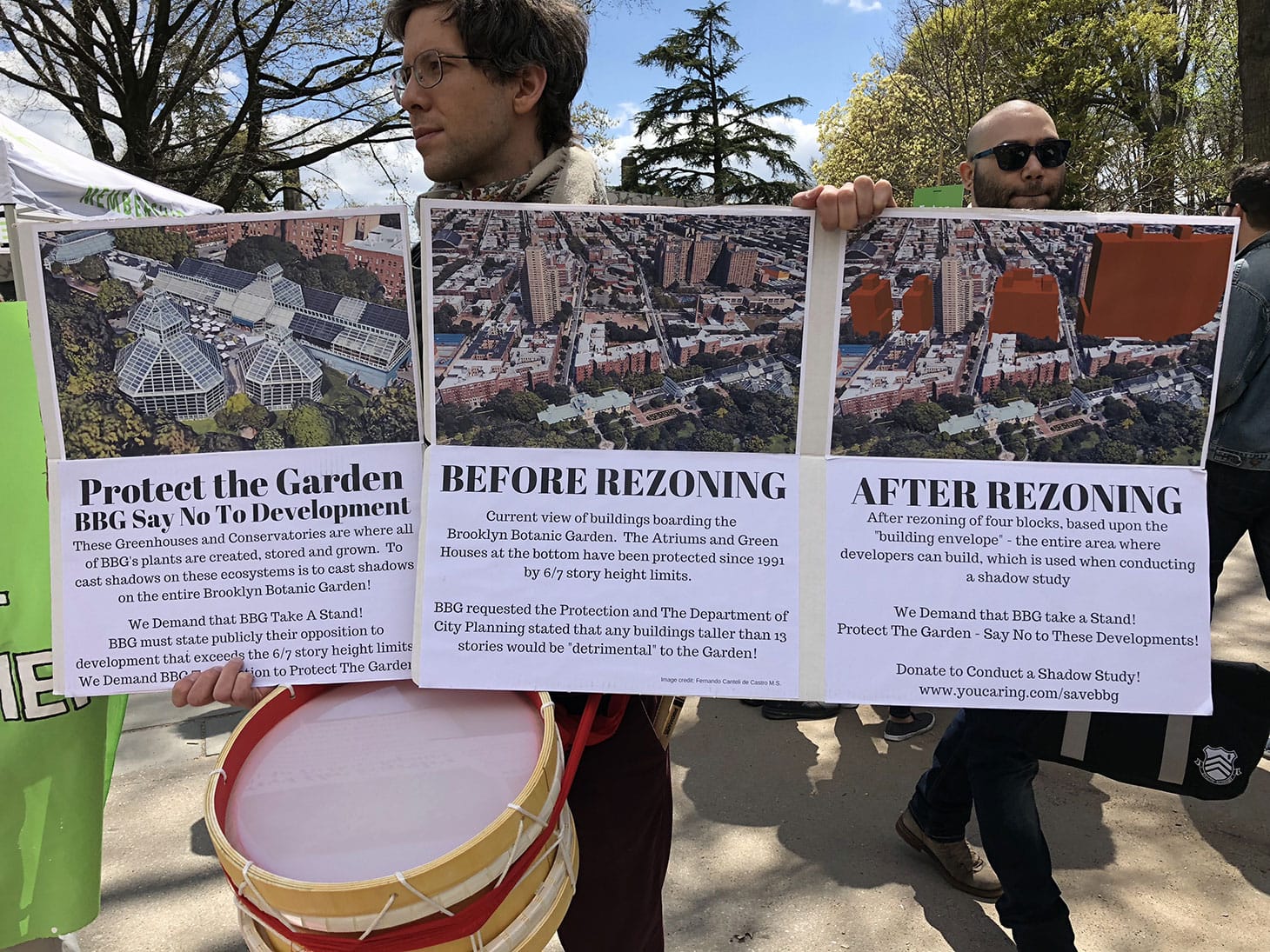 One local resident named Laura, who lives in Park Slope, said she was attracted to the action, but she was surprised this was her first time hearing about the issues. “The Brooklyn Botanic Garden is so vital to the neighborhood and anything developed around it should be mindful of that, so I really want to learn more about the issue,” she told Hyperallergic.