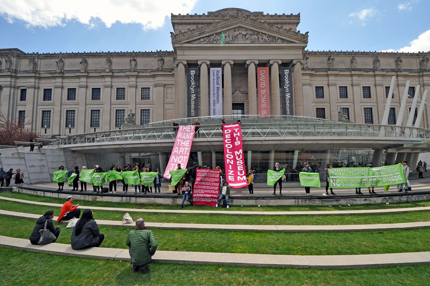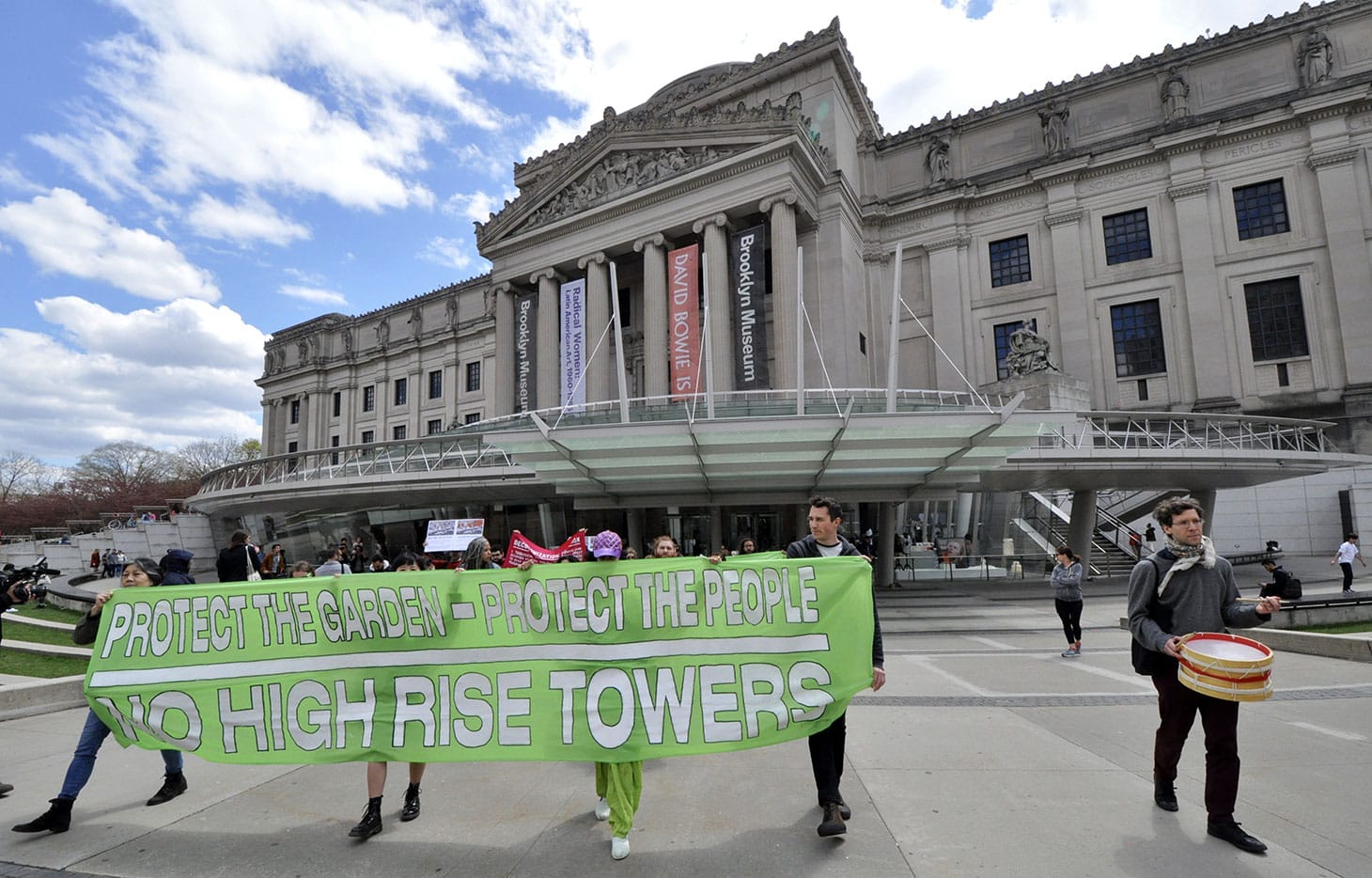 Over 60 protesters from 20 community groups rallied at the Brooklyn Museum and the Brooklyn Botanic Garden demanding the beloved institutions play a role in safeguarding their local communities.
