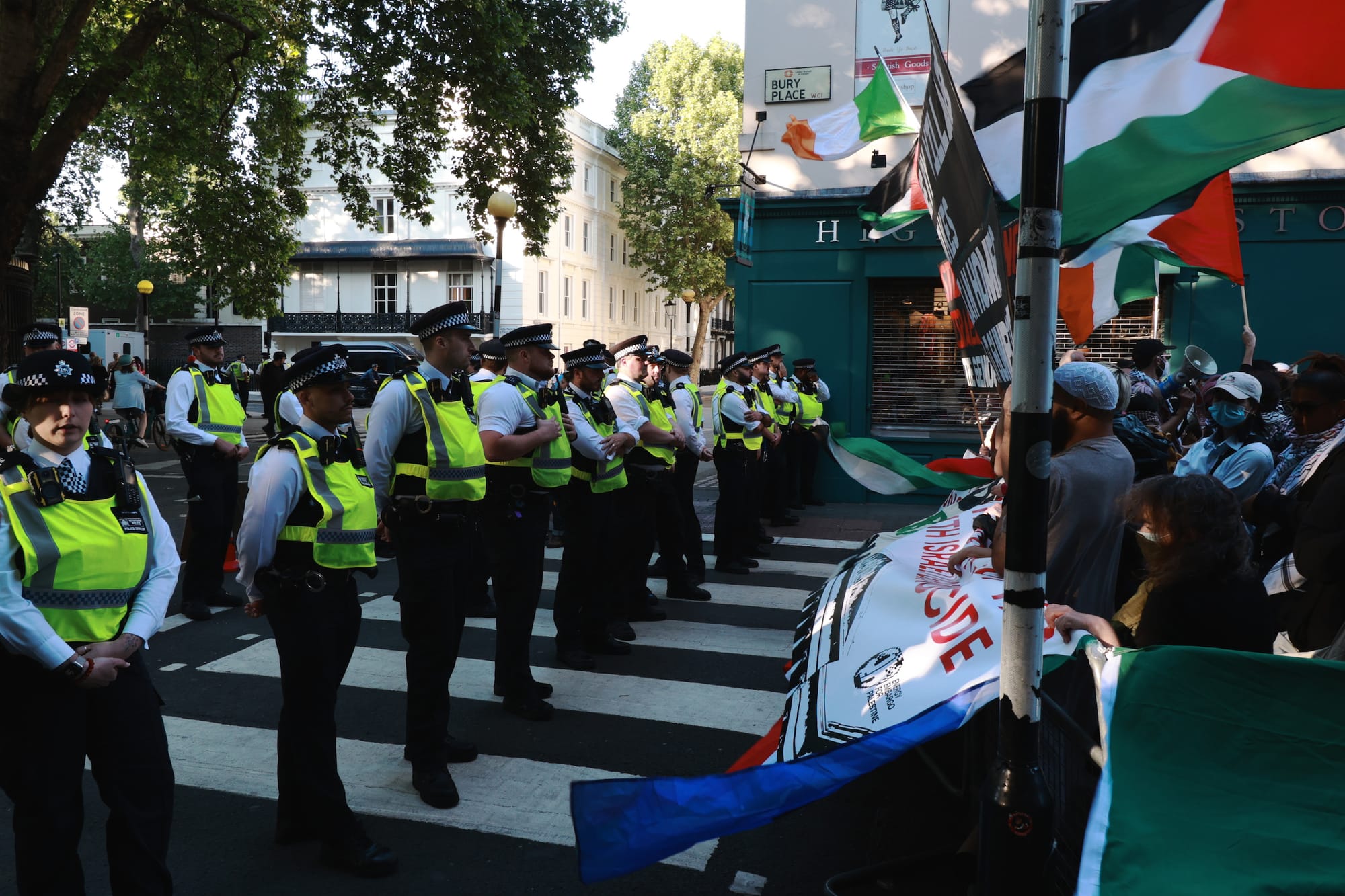 While the demonstration was supported by other Palestinian advocacy groups, it was also met with counterprotests from pro-Israel groups Stop the Hate and Our Fight UK.
