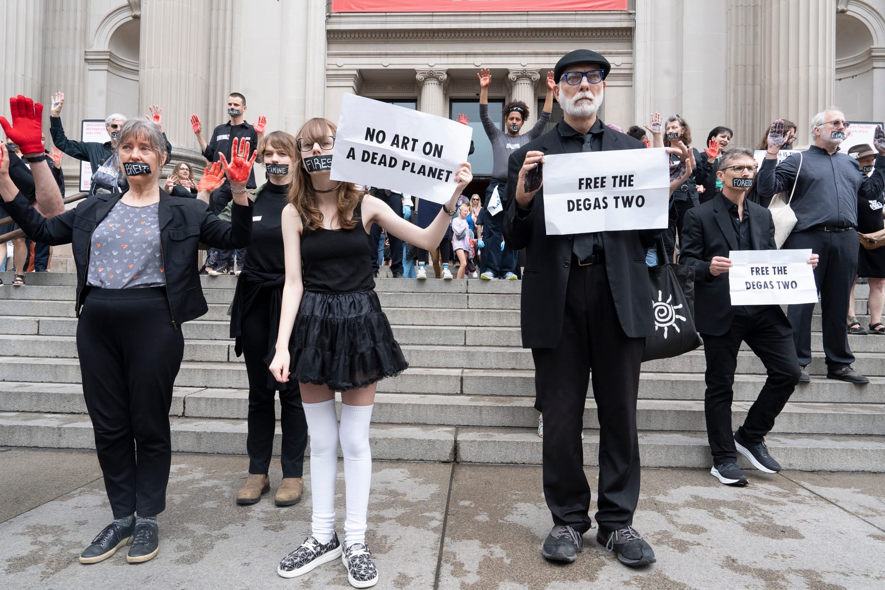 The action was staged in solidarity with climate protesters Joanna Smith and Tim Martin, who were indicted for targeting a Degas sculpture.