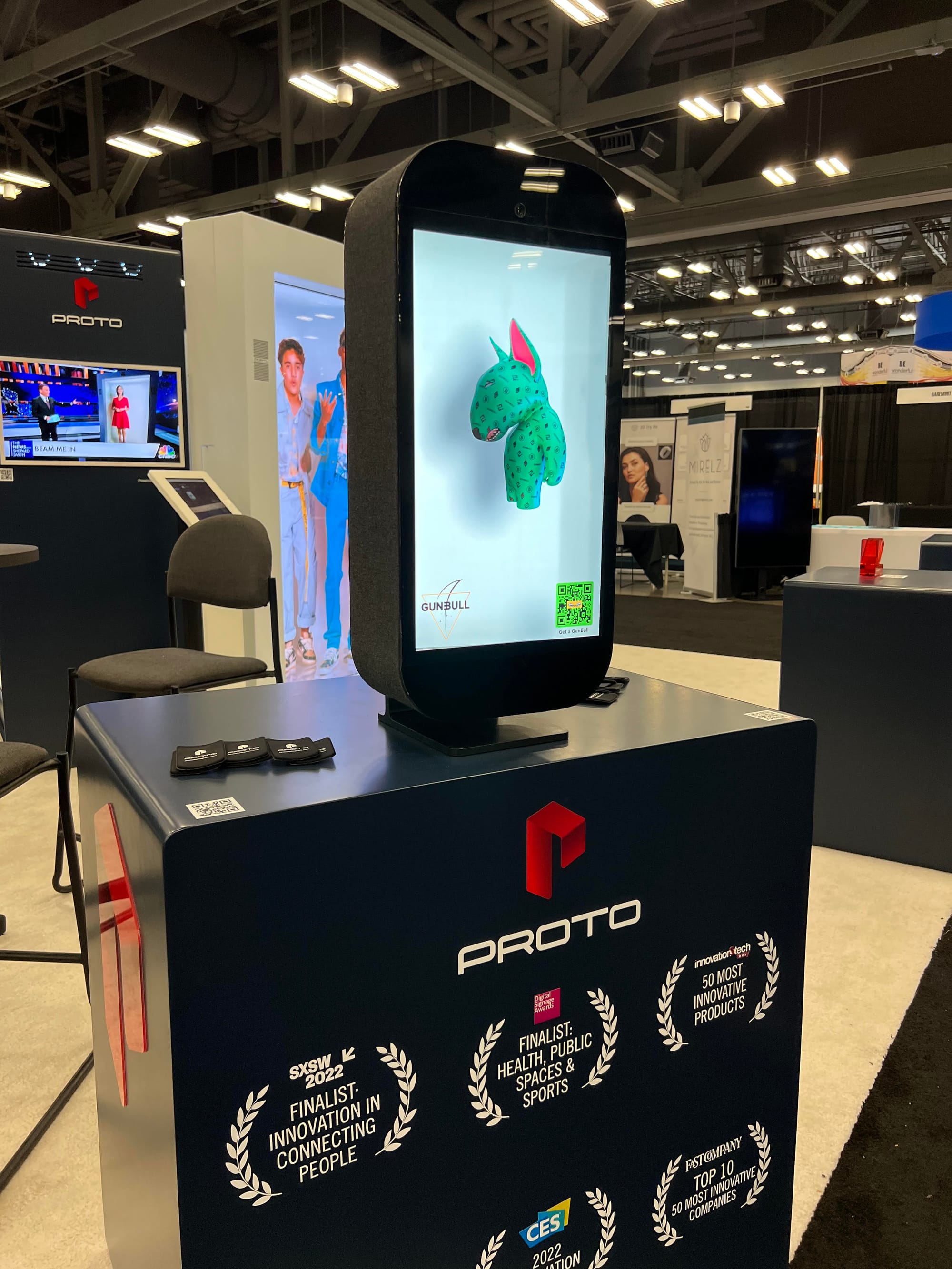 Proto's founder and CEO, David Nussbaum, has a long history of work in entertainment holograms. His resume includes working on Late Night host Jimmy Kimmel’s live hologram appearance at the 2014 Country Music Association Awards; a hologram of Ronald Reagan at the Ronald Reagan Presidential Library and Museum in California; and an interview with a hologram of WikiLeaks founder Julian Assange, among other projects. Nussbaum founded Proto in Los Angeles in 2019; a year later, the company raised $3 million in venture capital funding.