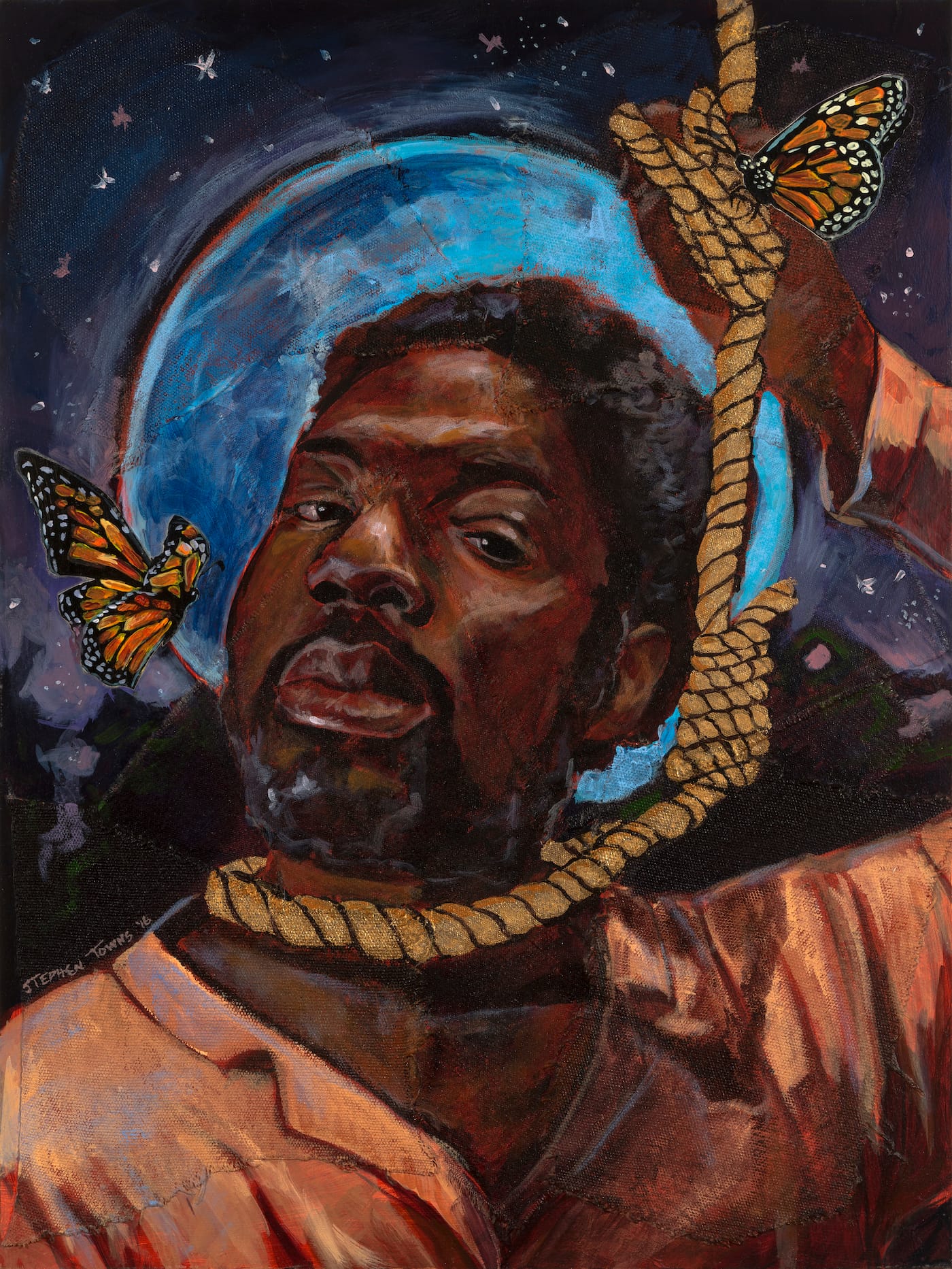 At Goucher College, Towns made the decision to remove his Joy Cometh series from the gallery based on the strong reaction it inspired and his desire to promote healing rather than to inflict pain. But these paintings are powerful because they diverge radically from the comforting version of history that most Americans prefer.