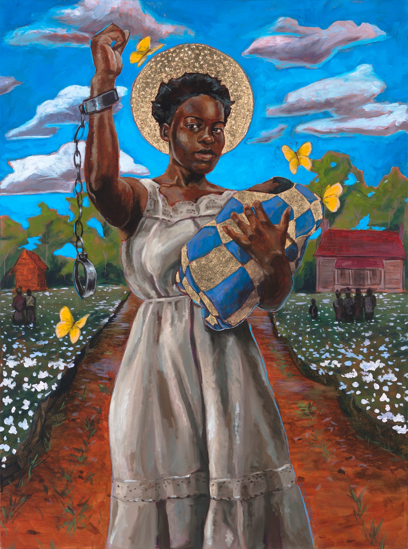 As with most American history, Nat Turner’s story has been told and retold by white male authors, including Styron, with fewer known works of historical research, art, or literature about him by black authors. It is within this context that the Baltimore-based, African-American artist Stephen Towns made his own series of paintings and quilts based on Turner’s rebellion, after he received research funding from a Rubys Grant in 2015.