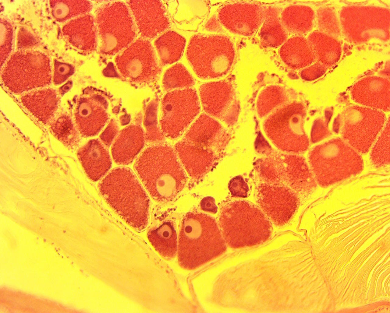 The polka dots, stripes, mandala-like arrangements, and other trippy patterns are, however, all natural — even if we don’t yet understand the logic behind them. “It might have something to do with complexity based on simple repeating elements,” Challoner says. “You know fractals? They have that same kind of inherent and mind-blowing beauty, but are produced by repeating very simple rules. In the same way, cells are incredibly complex, but it’s all chemical compounds doing their thing, very simple molecule-to-molecule interactions, repeated countless times, doing remarkable things.”