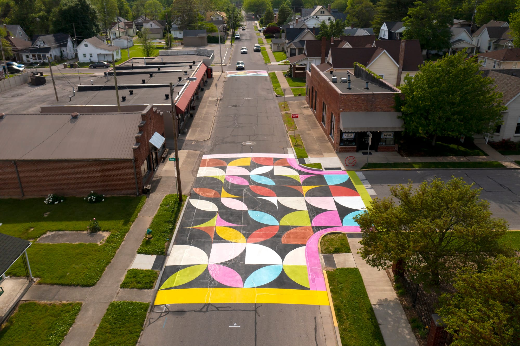 Artists Cory Robinson and Shamira Wilson painted this intersection in Columbus, Indiana. (photo by James Brosher)