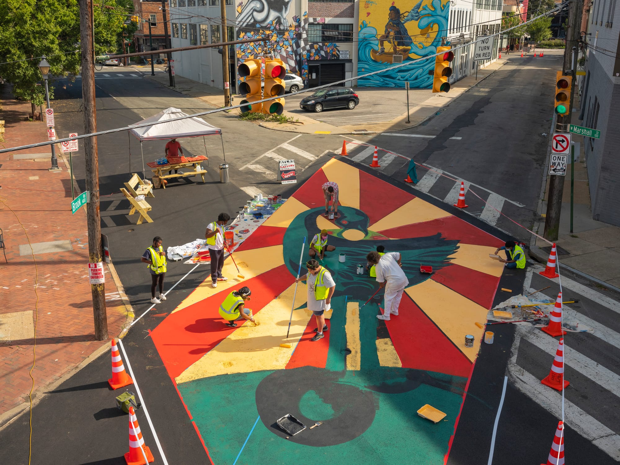 Artist Chris Visions painted this intersection in Richmond, Virgina. (photo by Justin Holmes)