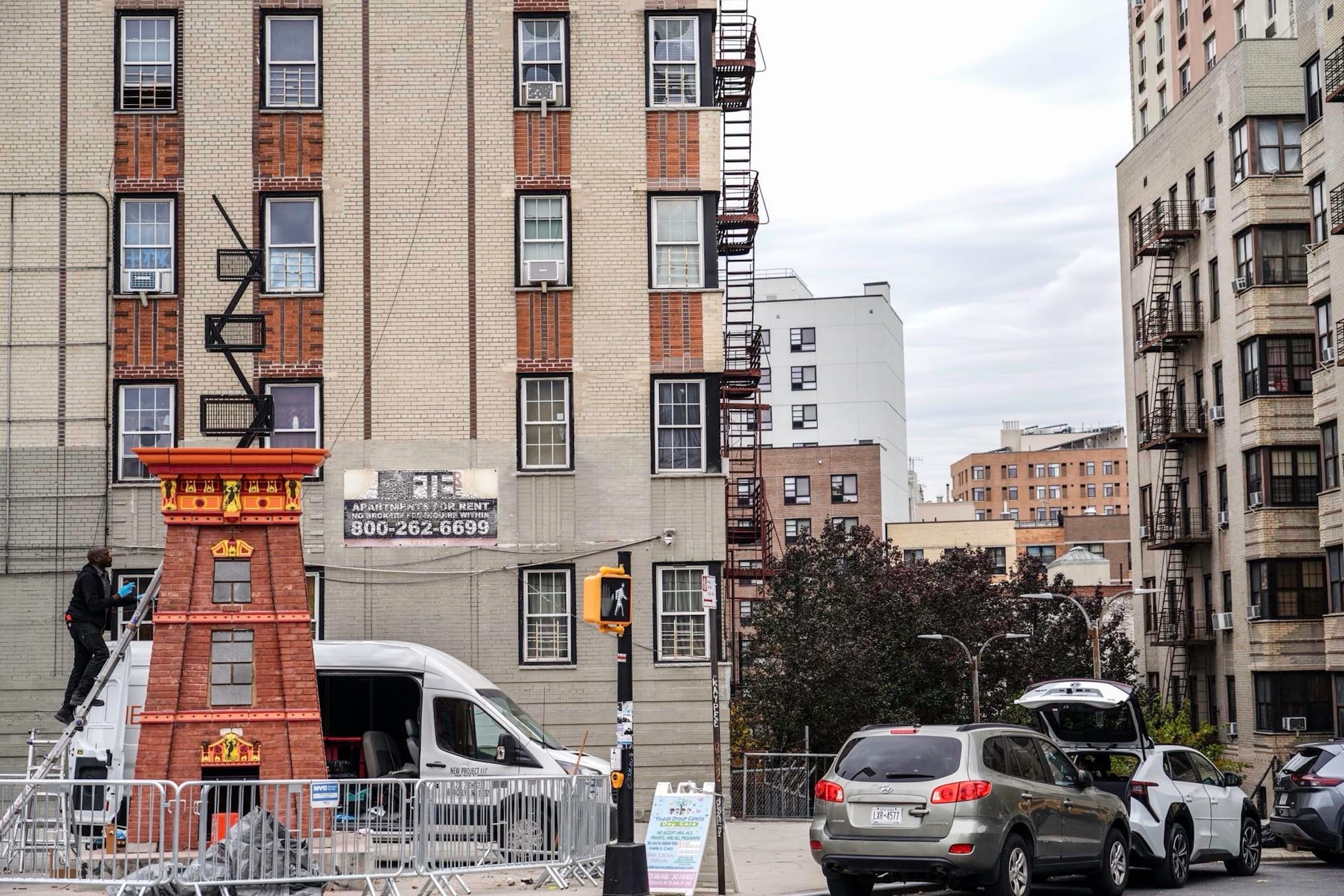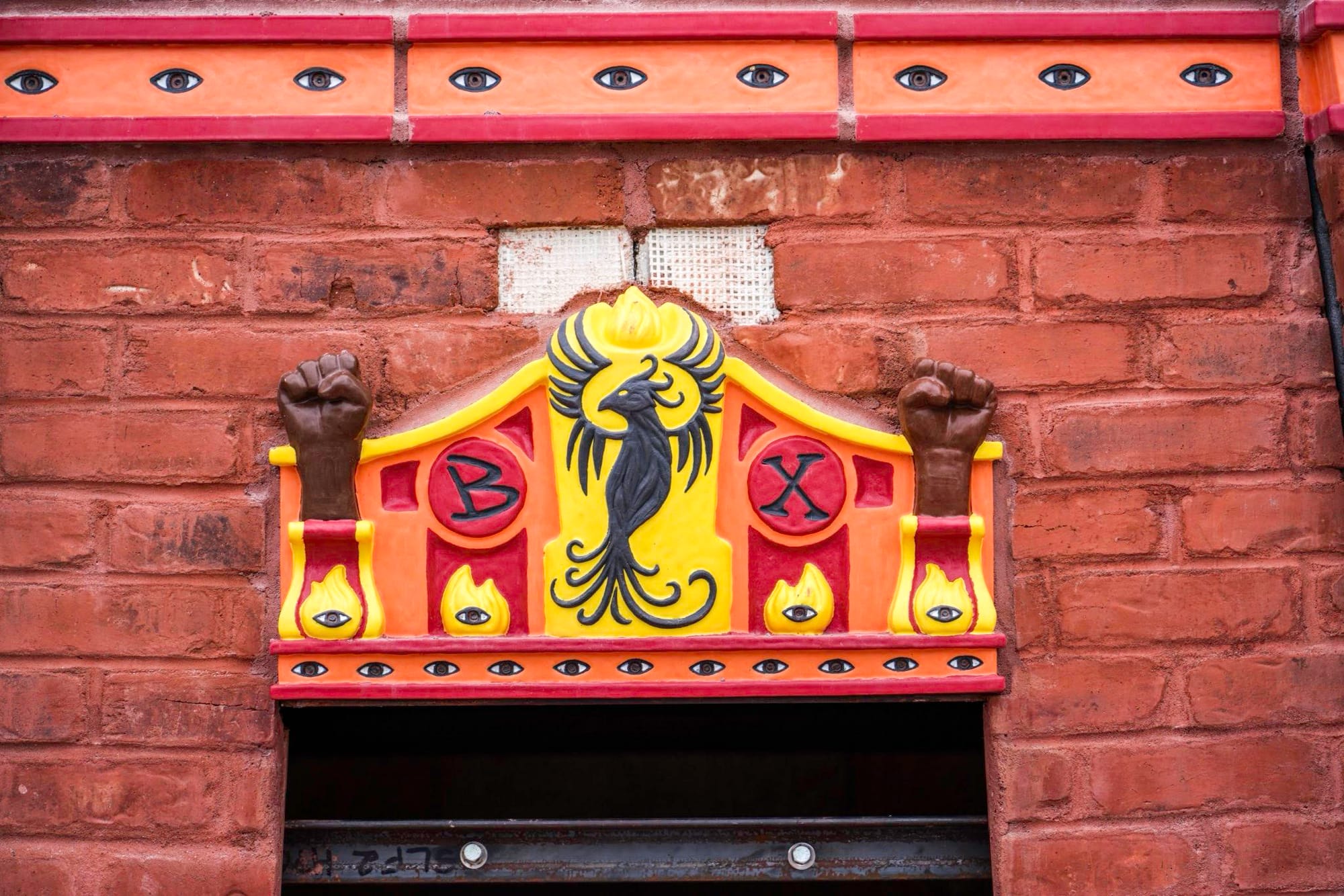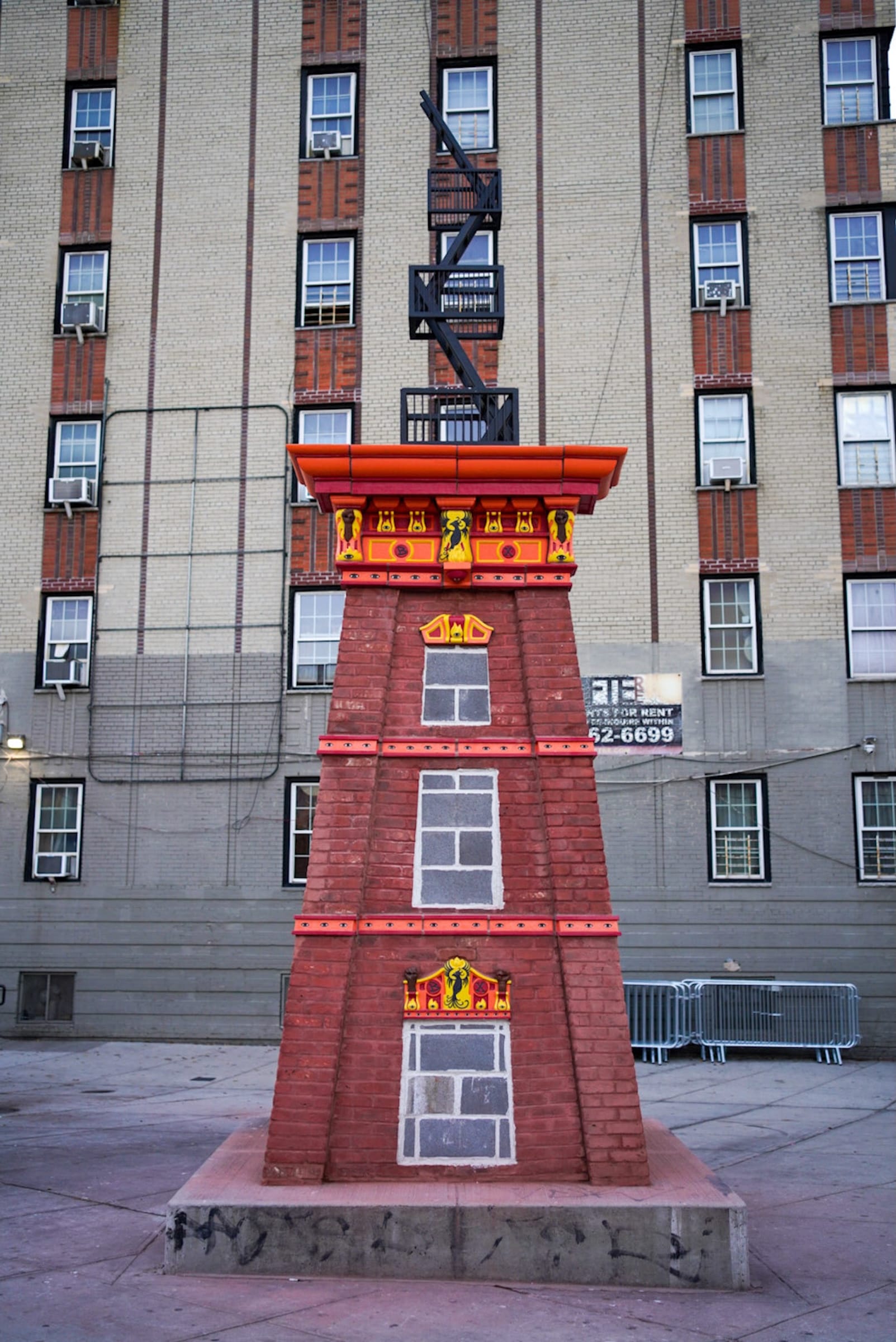 The monument evokes the rebuilding of the borough after the 1970s fires, according to a press release. During that decade, fires, sometimes initiated by landlords seeking insurance payouts, razed 80% of the South Bronx's housing stock. The permanent work, commissioned by the city through the Percent for Art program, stands between Grand Concourse and Morris Avenue.