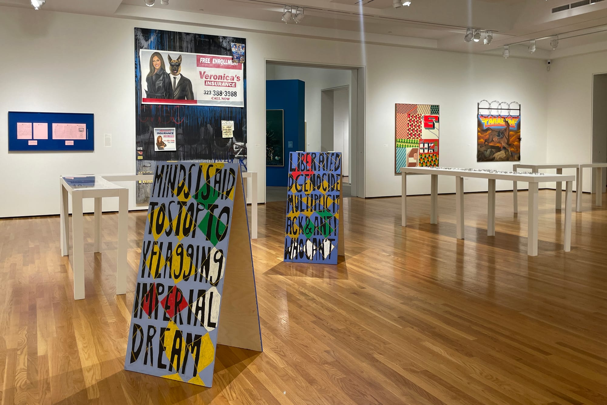 Instead of narrowing down California to just one language, curator Alex Lukas makes room for many dialects in his exhibition Public Texts: A Californian Visual Language, which is currently on view at the Art, Design & Architecture Museum at the University of California, Santa Barbara. The exhibition shows how artists use text and image to play up different aspects of Californian culture.