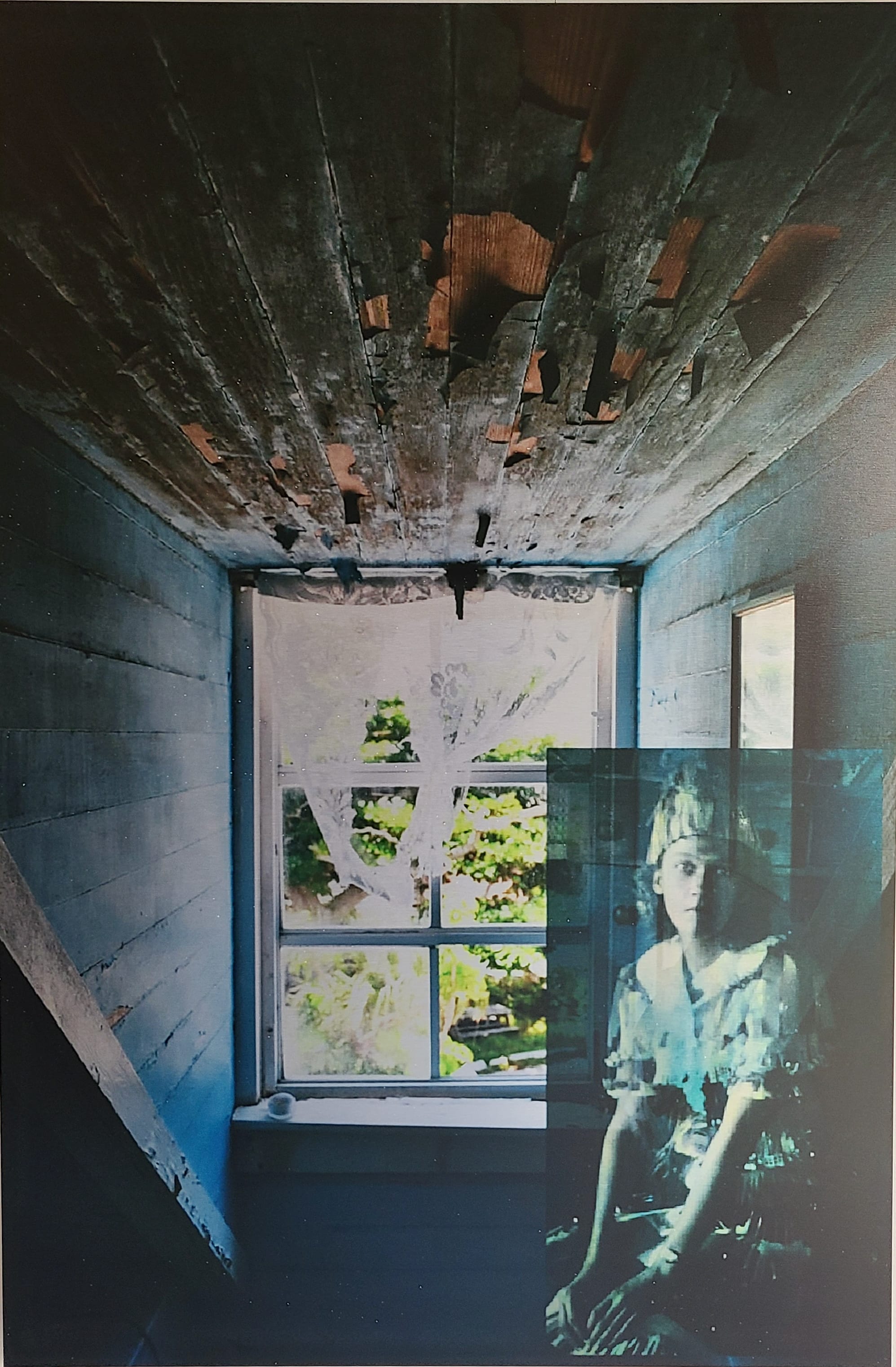 Leanne Russell takes places her figures in present-day and historically documented landscapes of the smaller island Green Turtle Cay, part of the Abaco islands. She colorizes and overlays archival images and prints the juxtaposed images on aluminum, which gives the images a shimmering and iridescent shimmer, particularly in the late afternoon sun, which I caught on my first of two visits to the gallery. Her “The Things We Inherit: The Paper Crown” (2020) made the figure in the lower right corner sit into the contemporary image like a watchful spirit guide.