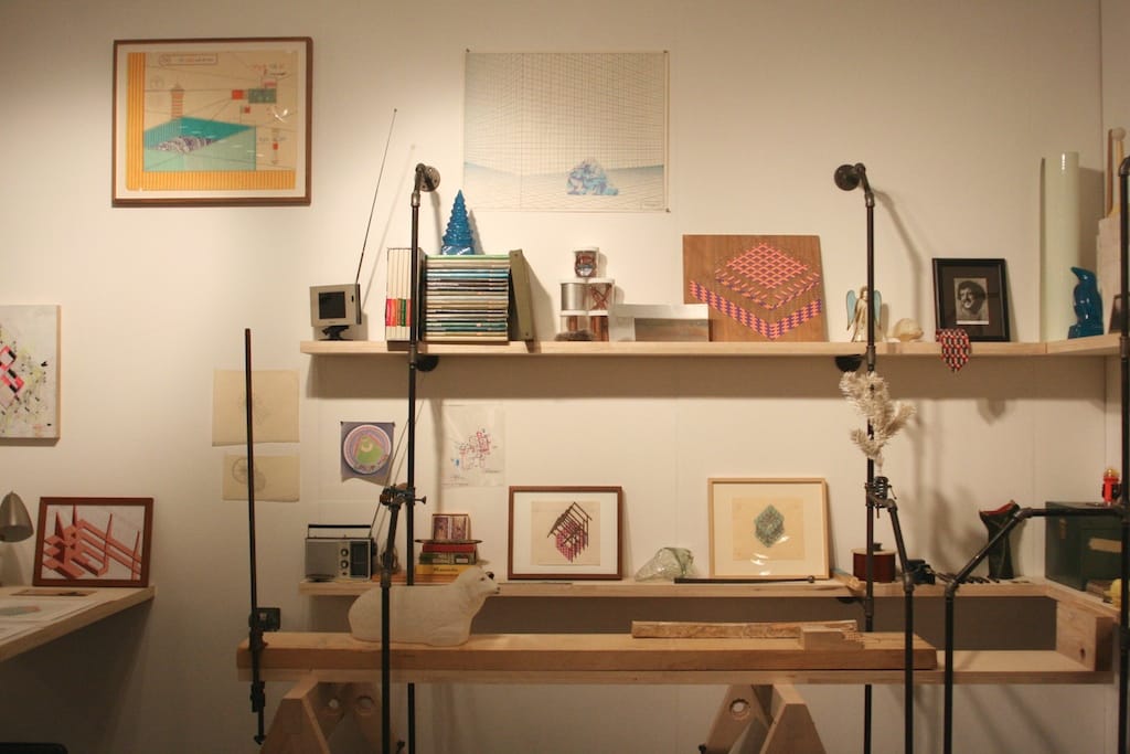 Jospeh Burwell has a great solo installation up at Miyako Yoshinaga art prospects entitled “School of the Viking Spaniard”. Part garage-workshop installation and part drawing show, the work was sculptural and immersive while showing off the artist’s draftsmanship. Architectural renderings of mosques and trippy geometric structures mingled with cathedral-arch sawhorses.