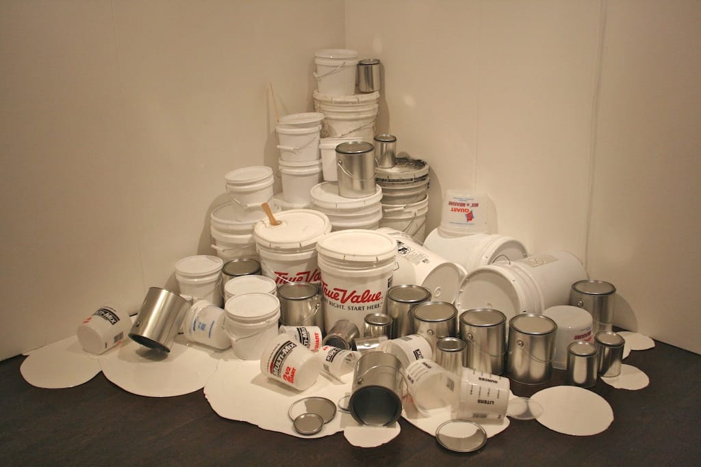 At Joshua Liner gallery, street/new media artist David Ellis had a time-lapse painting video on view along with this installation. The buckets are actually played like drums from the inside by pistons. The tops and handles also clank and thump. I think I liked the sound composition more than the sculpture itself, though in this case maybe they’re inseparable.