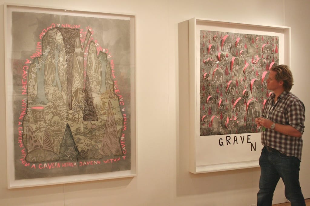 Tad Lauritzen Wright’s funky drawings at David Lusk gallery are fun and informal enough to offset their lack of strong sentiment. They’re like little to-do cartoons, kind of cutesy but still a little weird. This was the vibe of much of the Pulse fair.